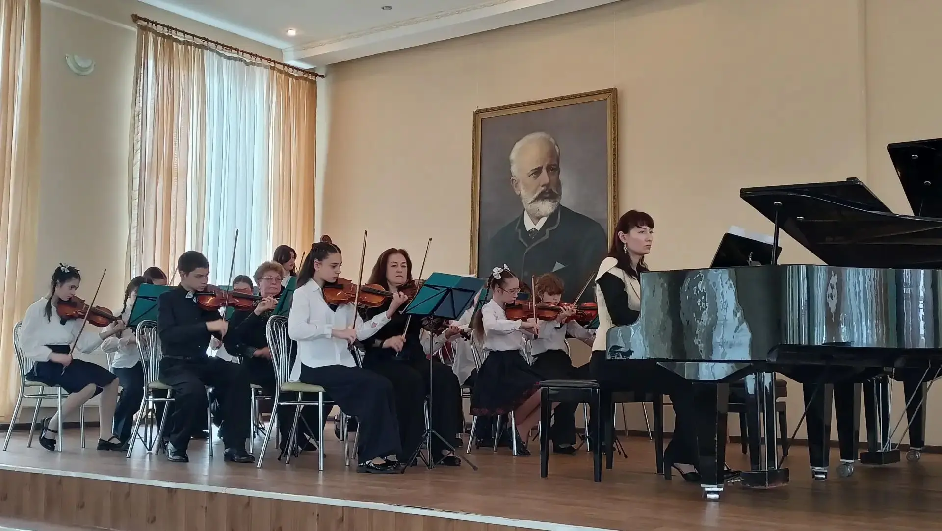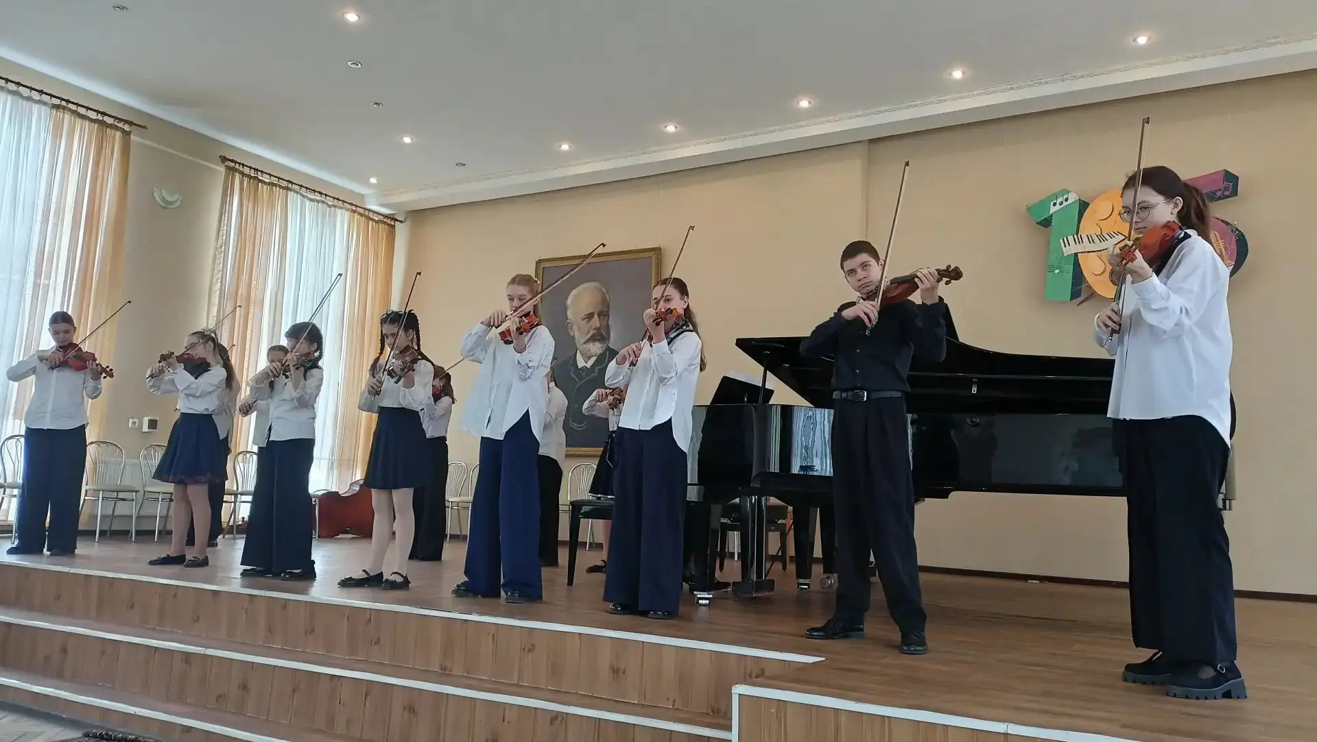 В концерте выступили несколько детских творческих коллективов: струнная группа «Тутти» под руководством Л.В. Ориничевой, ансамбль гитаристов «Каприс» под руководством И.В. Олейник, ансамбль аккордеонистов «Смайлики» под руководством Л.В. Лубенец, ансамбль скрипачей «Ноктюрн» под руководством Т.В. Бондаренко, хор младших классов «Родничок» и хор школы «Созвучие» под руководством О.А. Половневой. Также на сцену вышли камерный ансамбль (Лара Лемента и Кристина Зубчик) и квартет скрипачей «Иголочки» под руководством Л.В. Ориничевой.