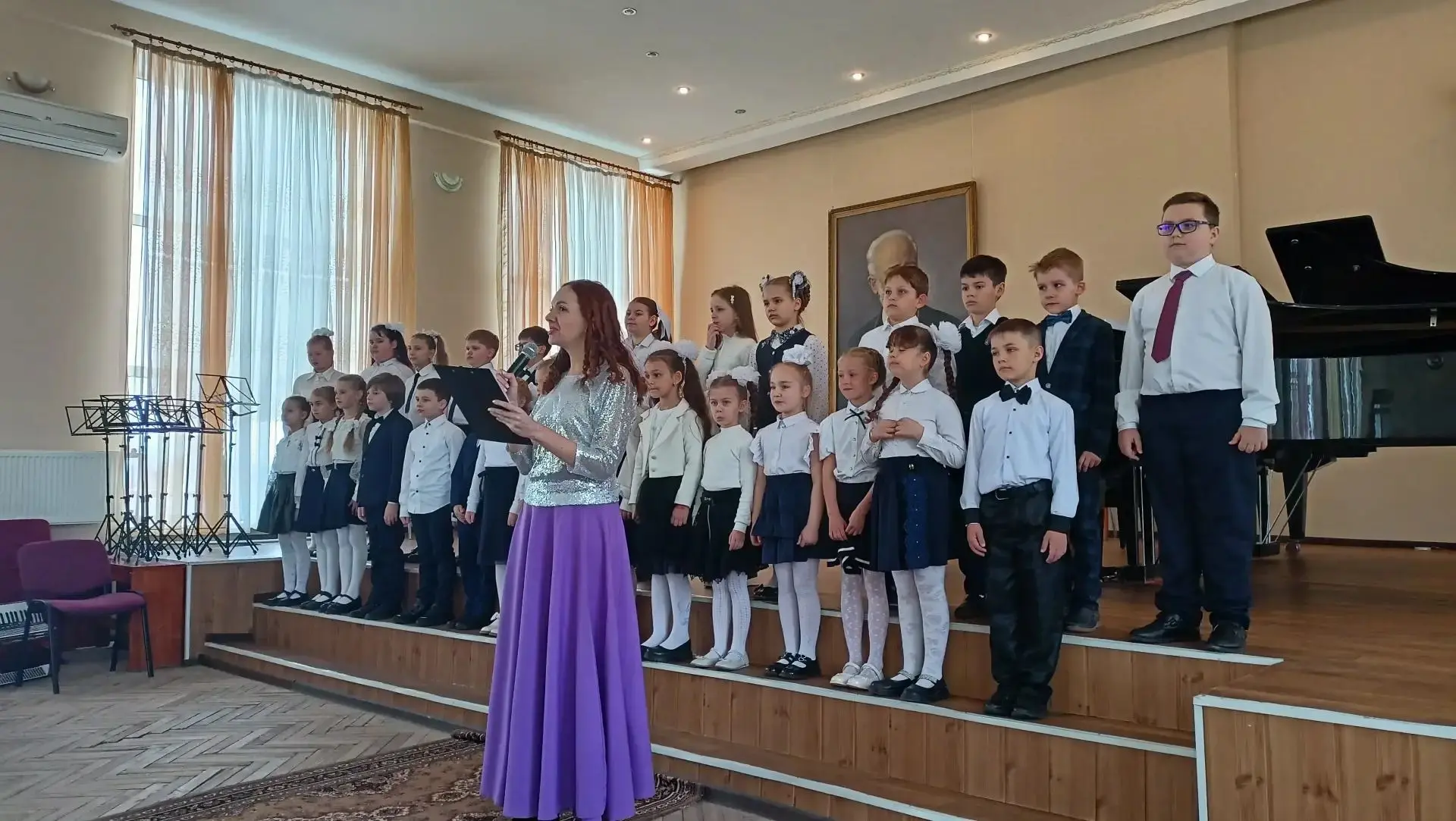 Ведущая концерта Е.С. Чепа отметила творческие успехи учащихся, их победы в конкурсах и участие в выездных выступлениях.