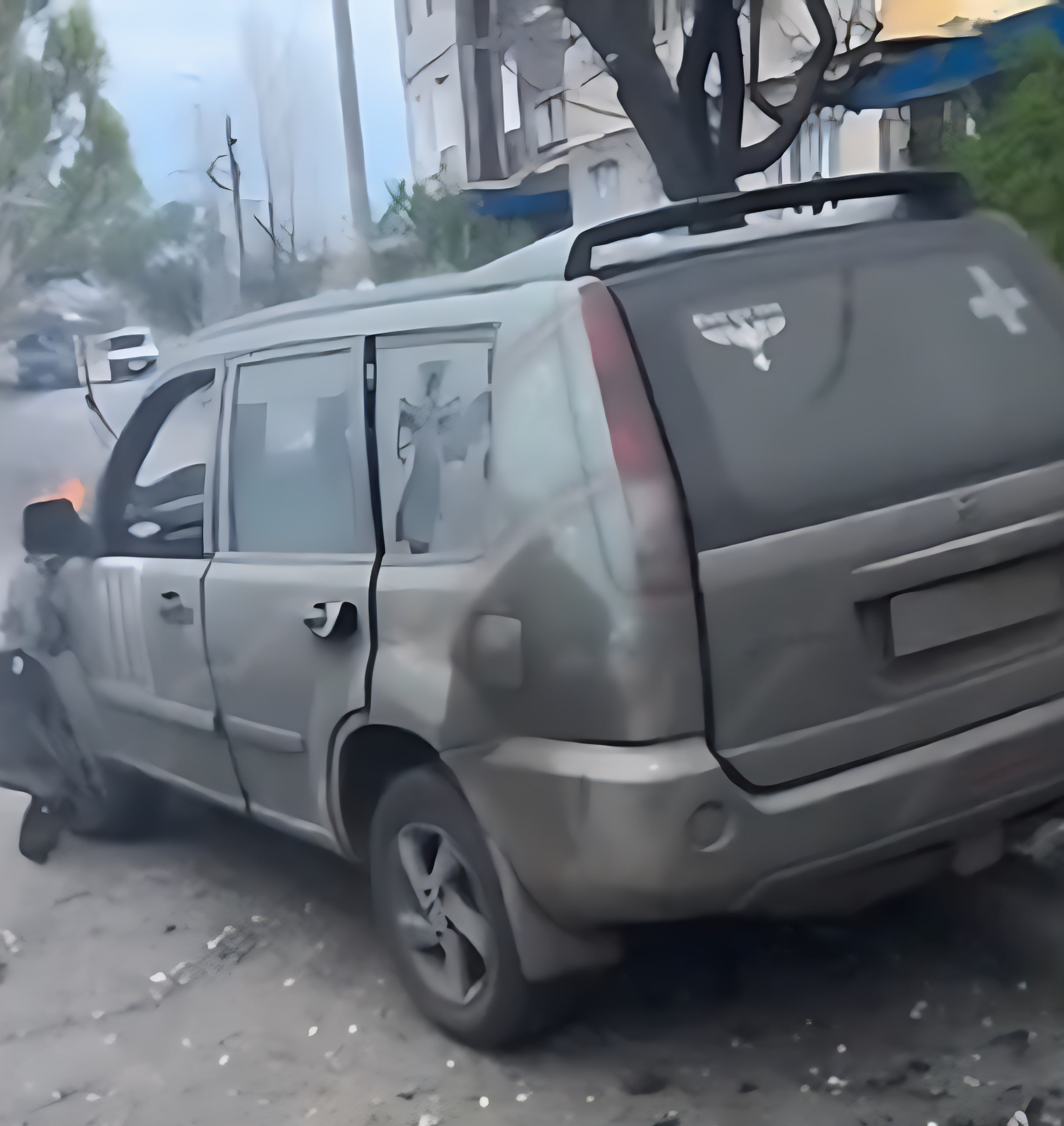 Обращаем внимание на стикеры, которыми ВСУшник «украсил» заднее стекло своего автомобиля – нацистский орел на месте.