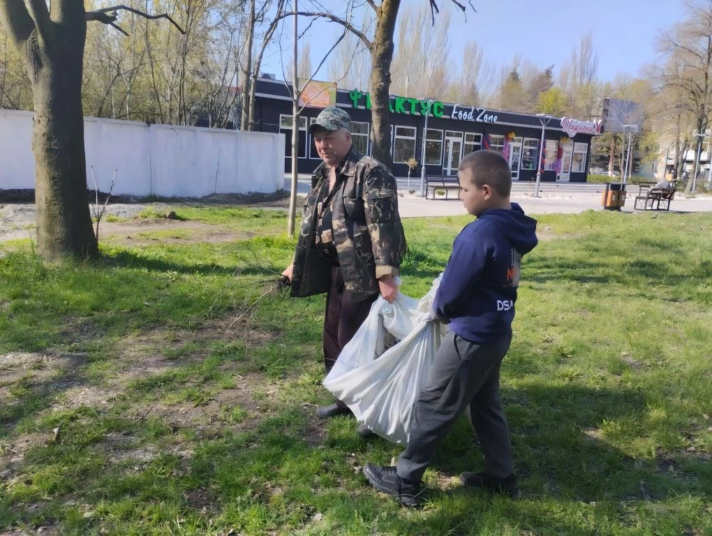 В субботнике по уборке территории, прилегающей к памятному знаку воинам-интернационалистам, приняли участие члены Шахтерской городской организации «Российский союз ветеранов Афганистана и специальных военных операций», а также внуки ветеранов.