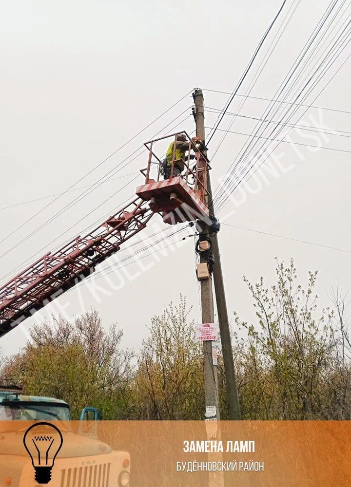 Сотрудники предприятия «Донецкгорсвет» продолжают восстанавливать наружное освещение города.