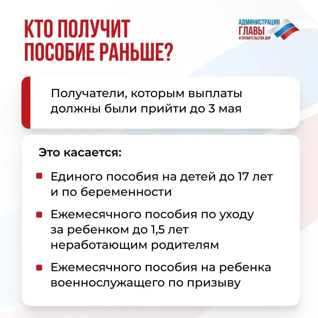 СФР перед майскими праздниками досрочно (29-30 апреля) перечислит детские пособия некоторым получателям