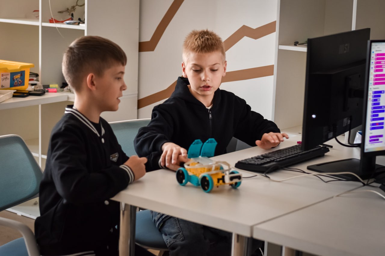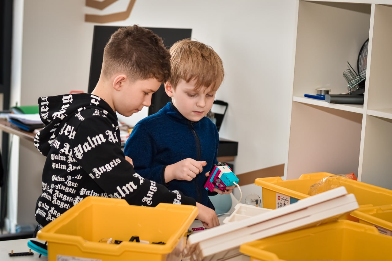 Ребята конструировали из конструктора действующие модели роботов и программировали их на выполнение простейших команд.