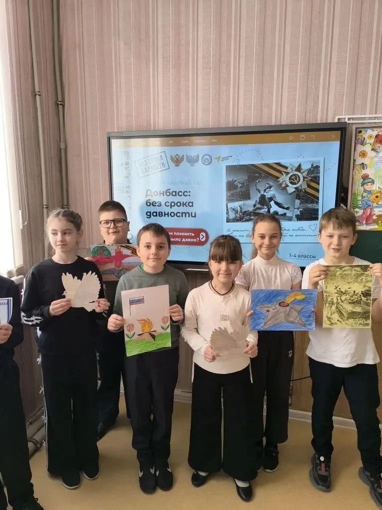 В ГБОУ «Школа № 4 Ясиноватского МО» прошёл классный час «Донбасс: без срока давности». Учащиеся расширили свои знания о событиях Великой Отечественной войны и узнали о страданиях мирных жителей Донбасса, пострадавших от рук нацистов. Ребята обсудили, почему так важно бережно относиться к истории родного края и хранить память о прошлом.
