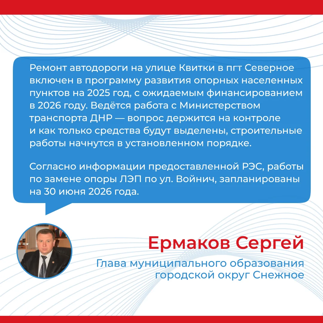 Итоги прямого эфира главы муниципального образования городской округ Снежное Сергея Ермакова