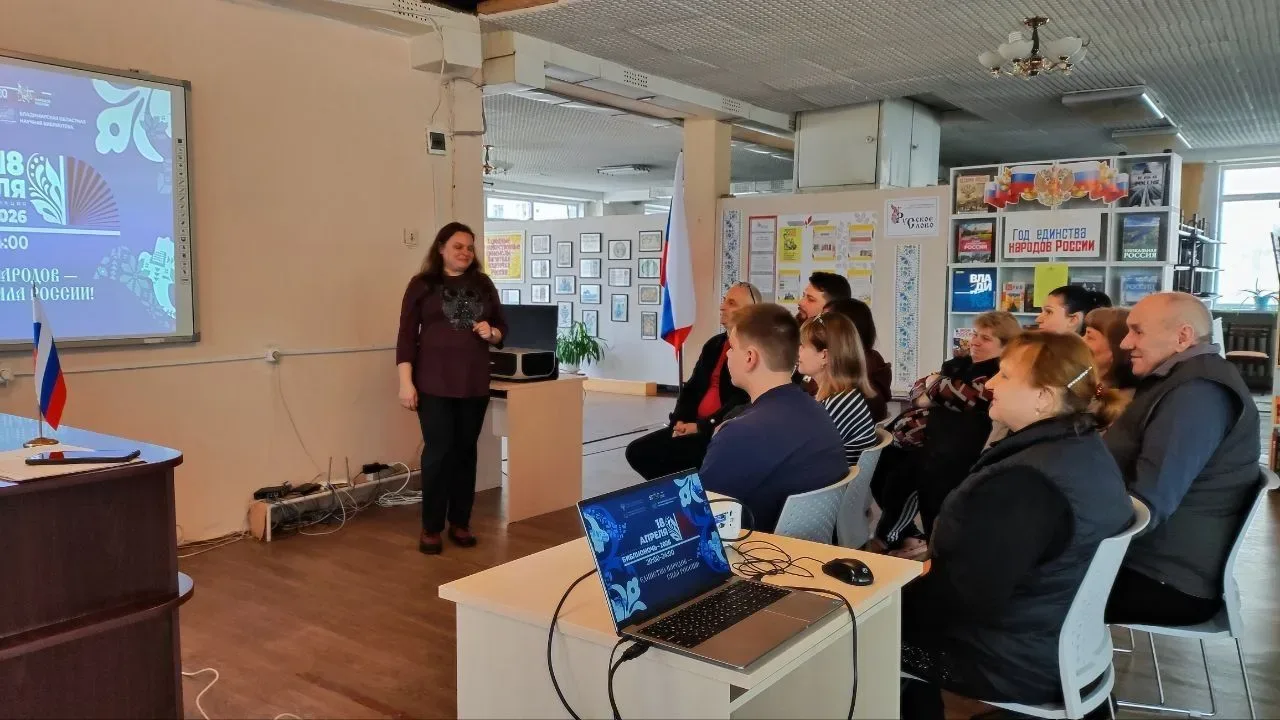Вниманию посетителей представлена многоформатная выставка «2026 – Год единства народов России», которая включает в себя стендовую презентацию и выставку литературы по теме.