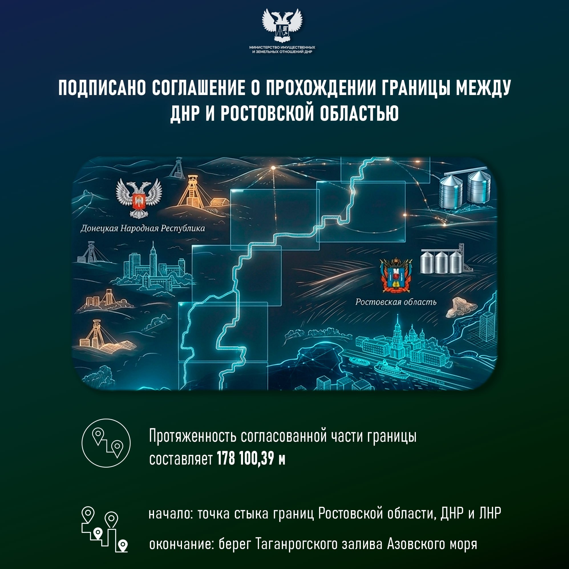 Главой ДНР Денисом Пушилиным и Губернатором Ростовской области Юрием Слюсарем подписано Соглашение «О прохождении части границы между Донецкой Народной Республикой и Ростовской областью»