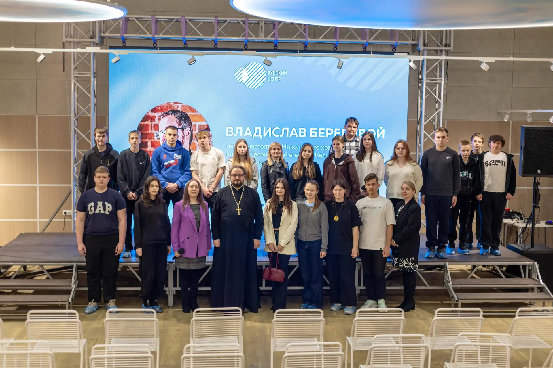 А теперь он среди молодёжи Донбасса: иерей, настоятель Никольского храма г. Мосальска, клирик Песоченской епархии Калужской митрополии Владислав Береговой в Донецкой Народной Республике!