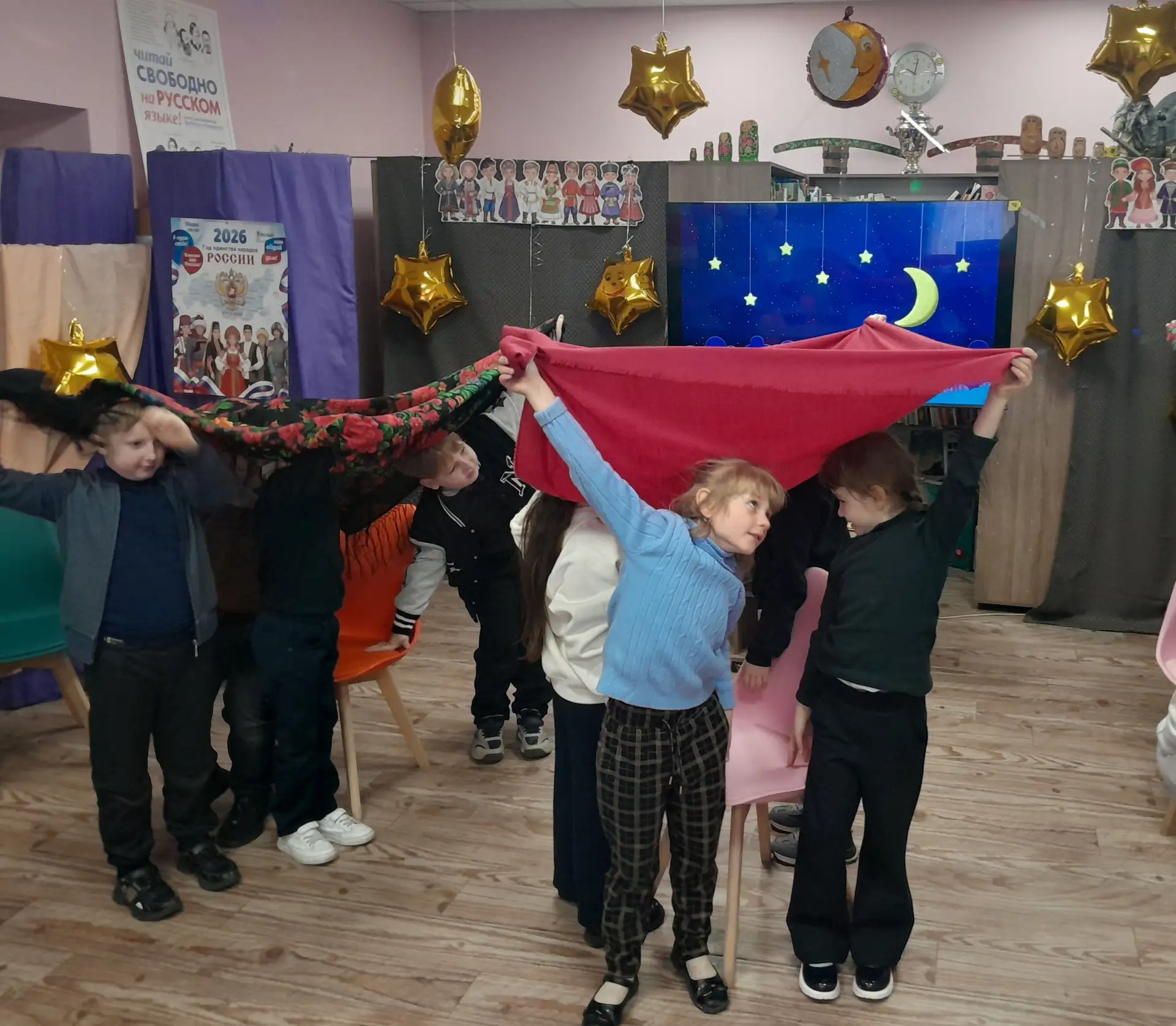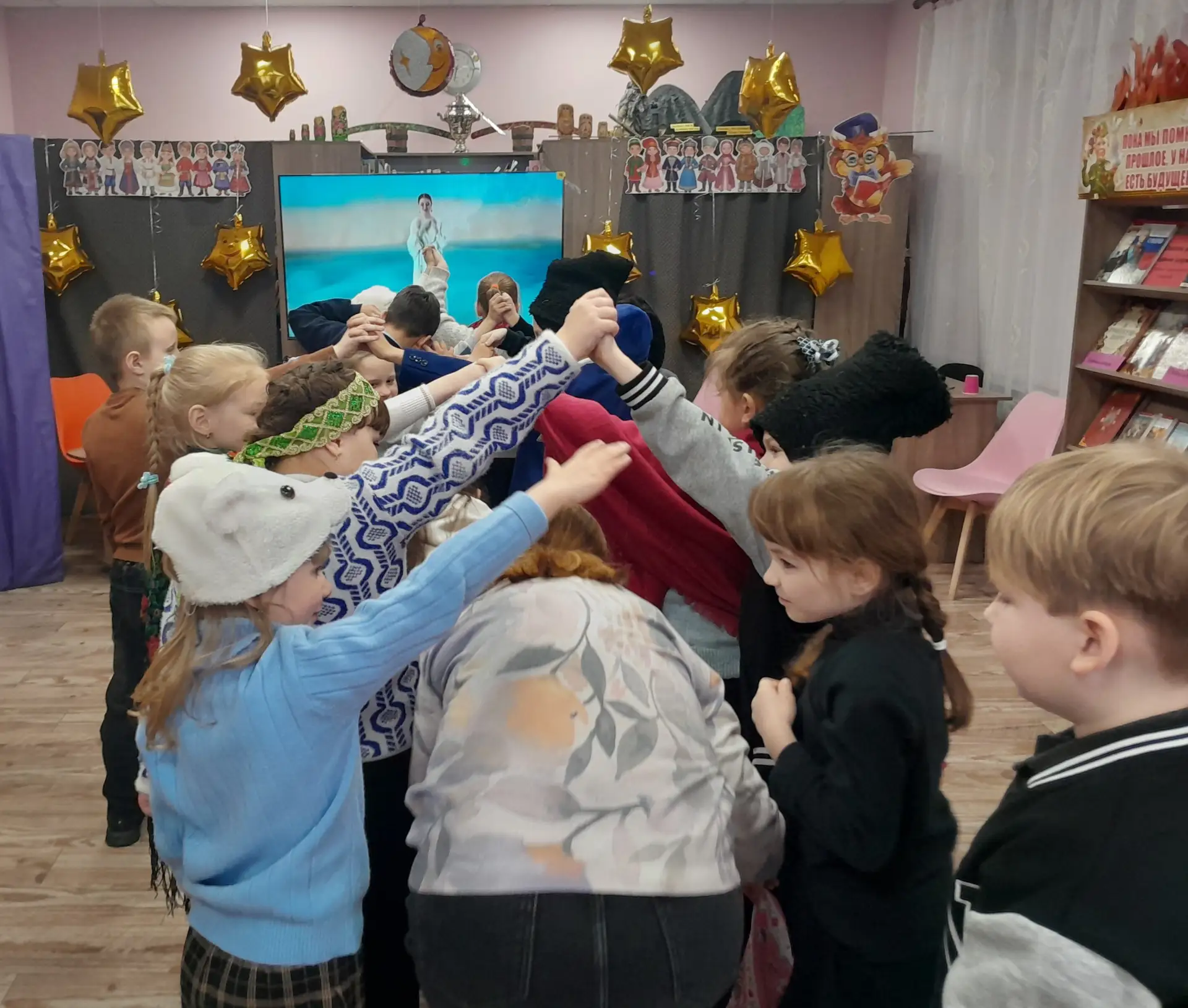 В рамках ежегодной Всероссийской акции «Библионочь-2026» сотрудники детской библиотеки-филиала провели для обучающихся 1 класса МБОУ «Школа № 5 города Дебальцево» фольклорный час «Сказки на ночь».