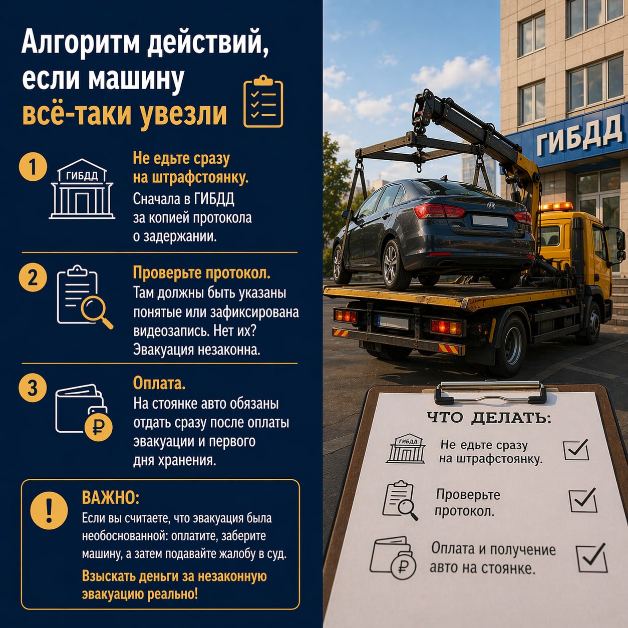 Забрали машину на эвакуаторе? Не беда! Рассказываем, что делать