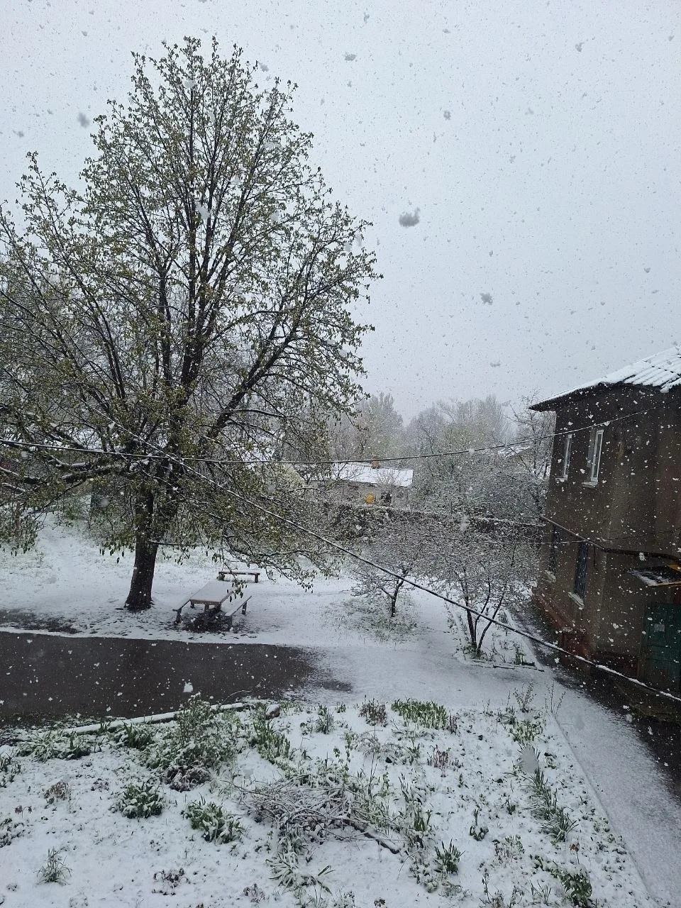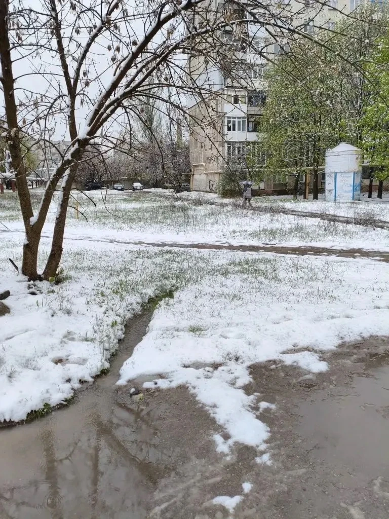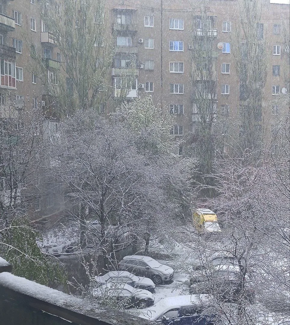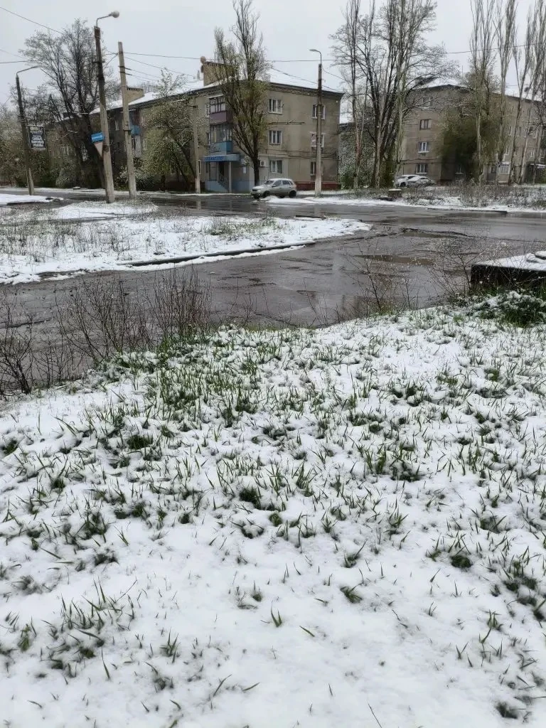 Ого, конец апреля, а природа снова удивляет! В Горловке сегодня зимняя сказка – с самого утра валит снег