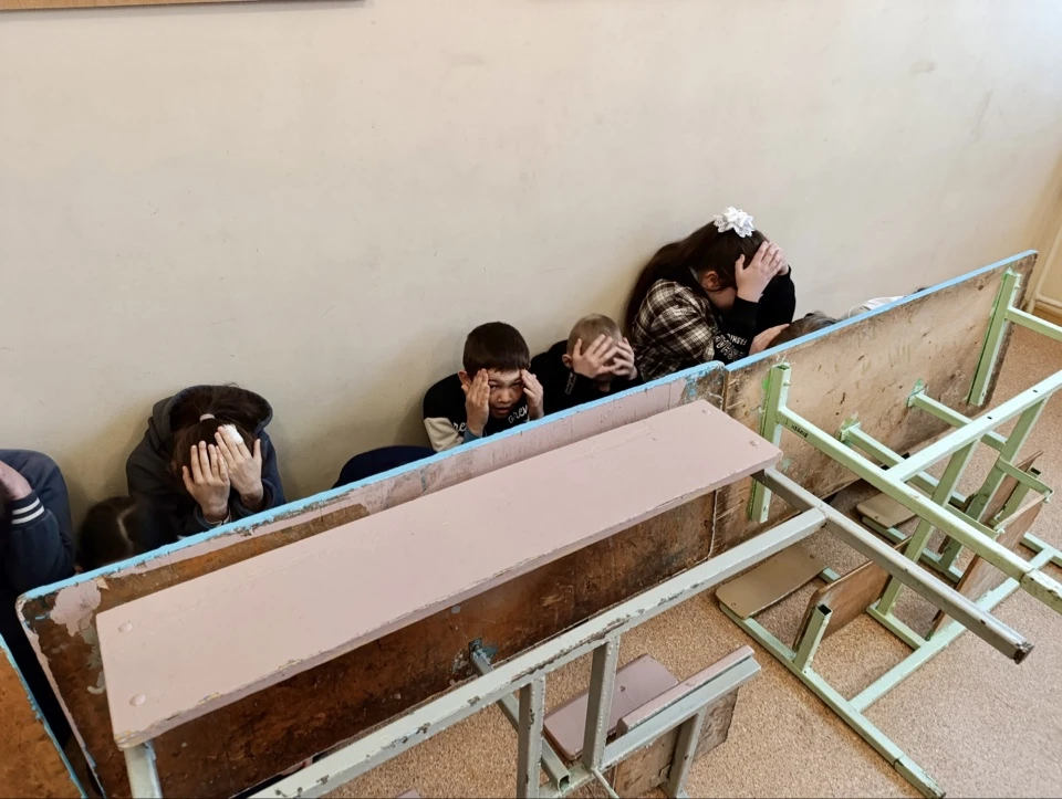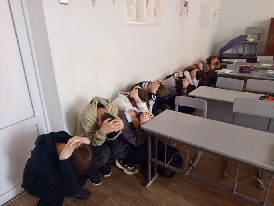 Обучающиеся и персонал организованно перемещены в коридоры без окон, цокольные и подвальные помещения.