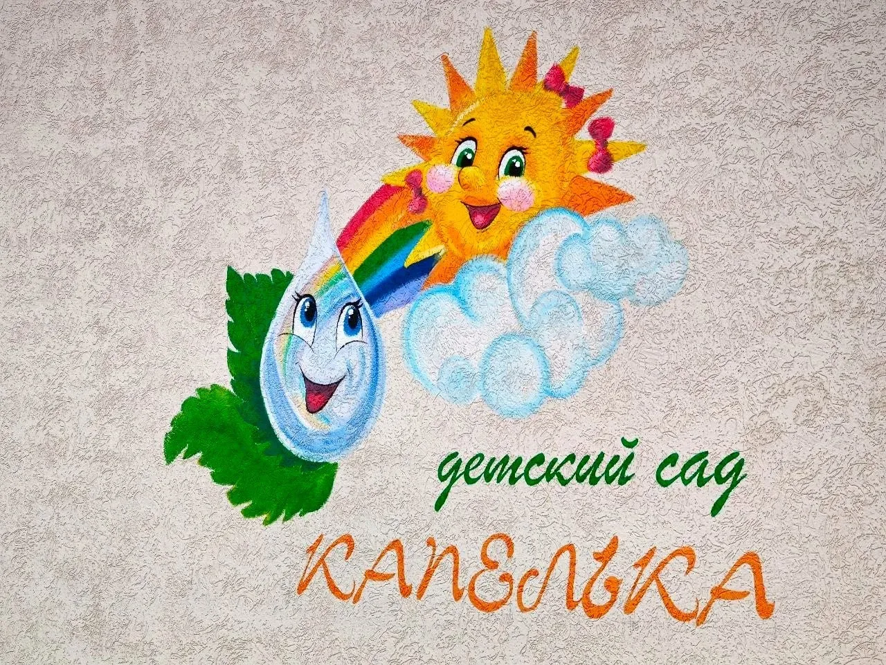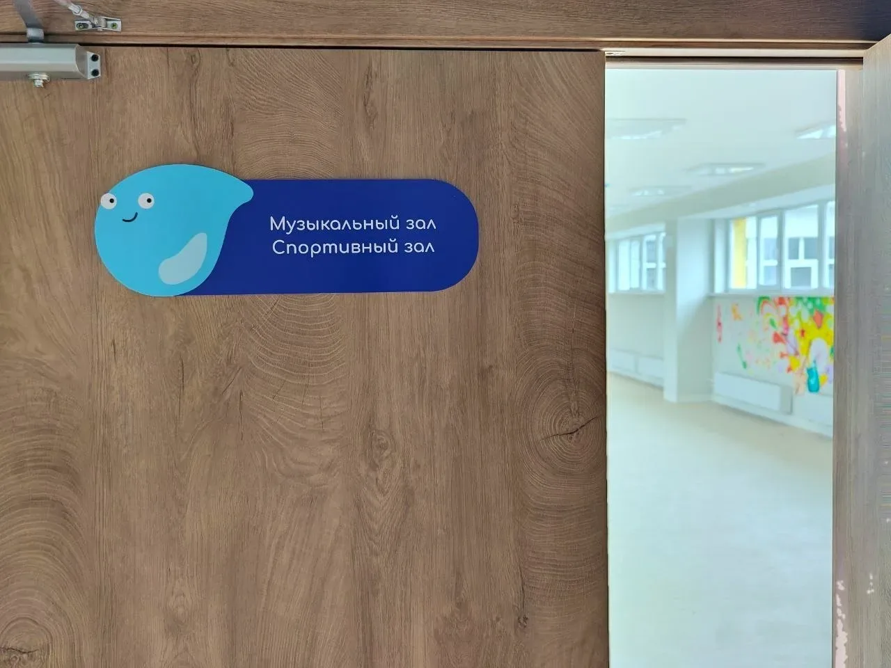 Навигация в саду продумана до мелочей: все указатели, вывески и названия помещений имеют общую концепцию и стилизованы под «капельку». Это создаёт целостную визуальную среду и поможет детям легче ориентироваться в пространстве.