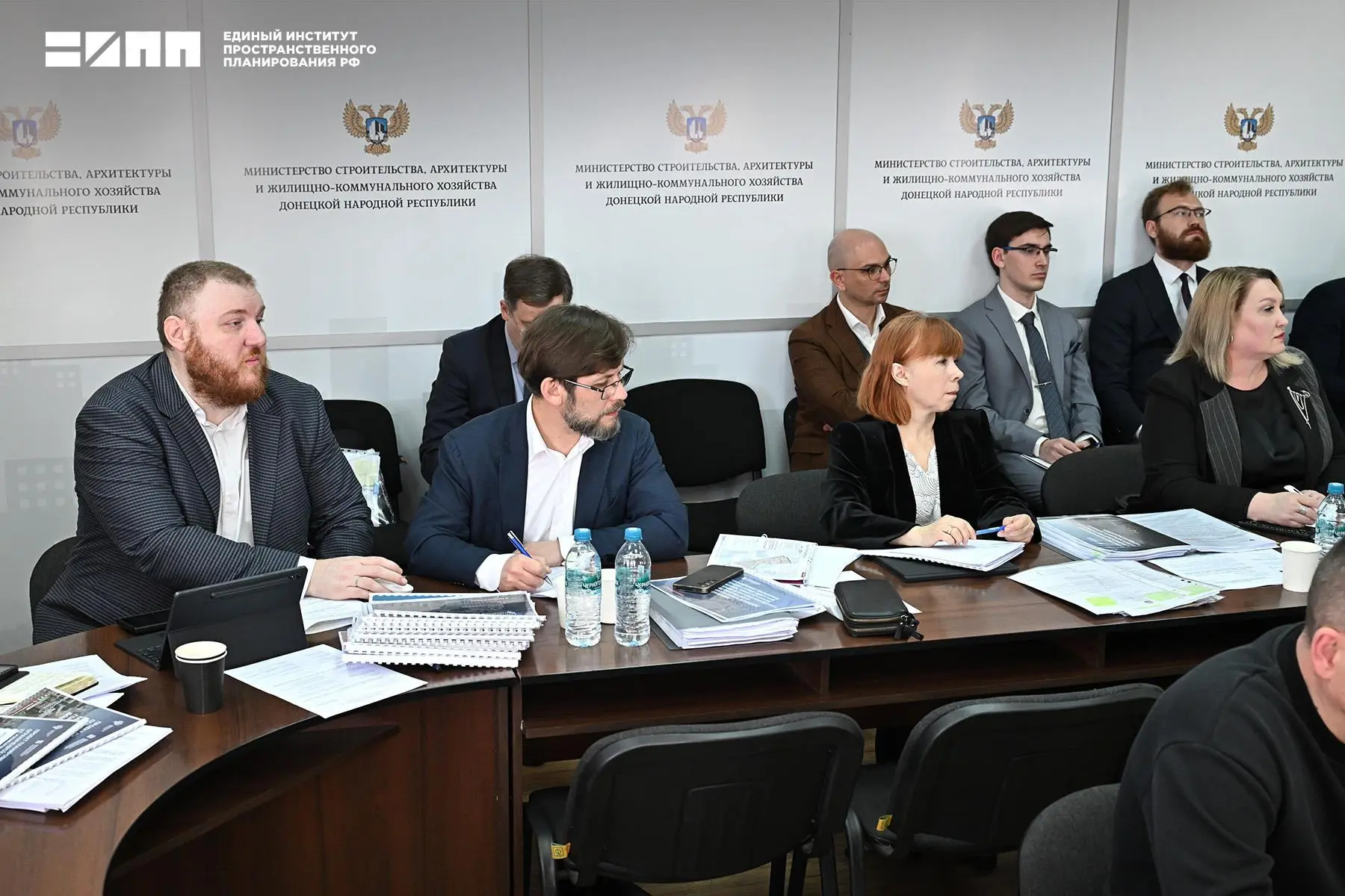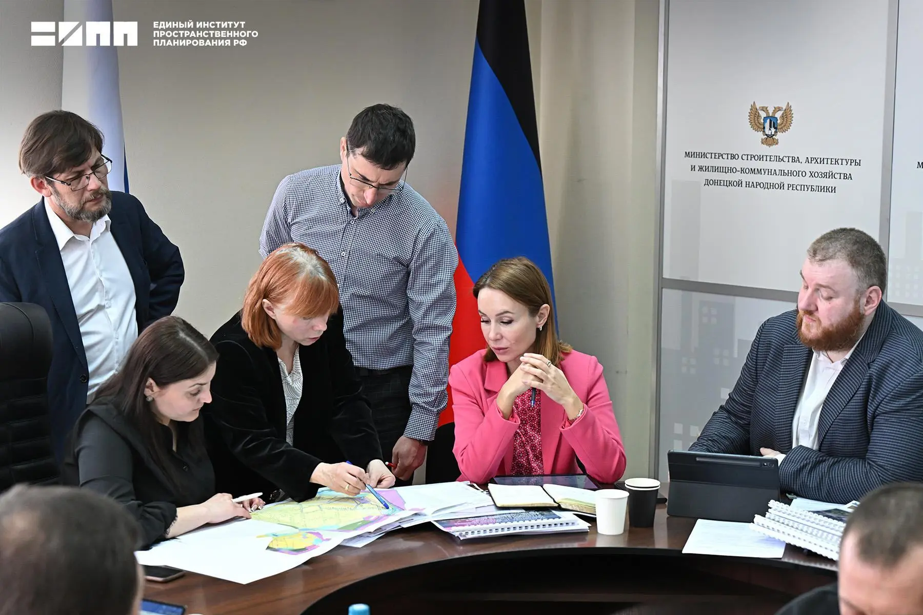 Совещание прошло в Донецке, в Департаменте строительства Минстроя ДНР, под руководством директора Департамента градостроительства, архитектуры и территориального развития Минстроя ДНР Виктории Соковой и директора ЕИПП РФ Дины Саттаровой с участием экспертов Единого института и Минстроя ДНР, а также представителей администраций городских округов Макеевки, Горловки, Докучаевска, Мариуполя и Мангушского муниципального округа.