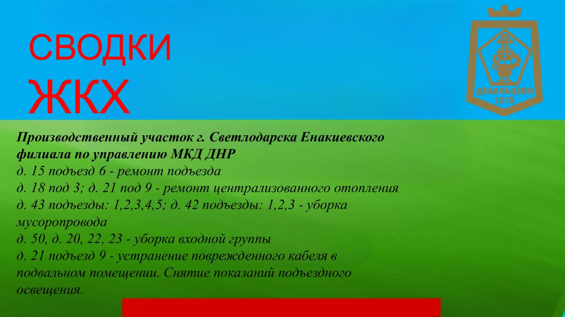 "Донецкэнерго" филиал АО "ЮЗЭСК" Торезский городской РЭС работает в штатном режиме.Торезский участок ШУГГ «Донбассгаз» Филиала ООО «ЧМНГ» работает в штатном режиме.Филиалом «Торезское ПУВКХ» ГУП ДНР «Вода Донбасса» 21.04.2026...