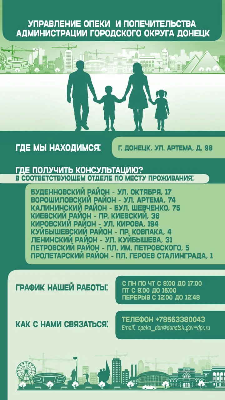 Алексей Кулемзин: Уважаемые Дончане!. Управление опеки и попечительства администрации г.о Донецк оказывает помощь в вопросах защиты прав детей и совершеннолетних недееспособных граждан