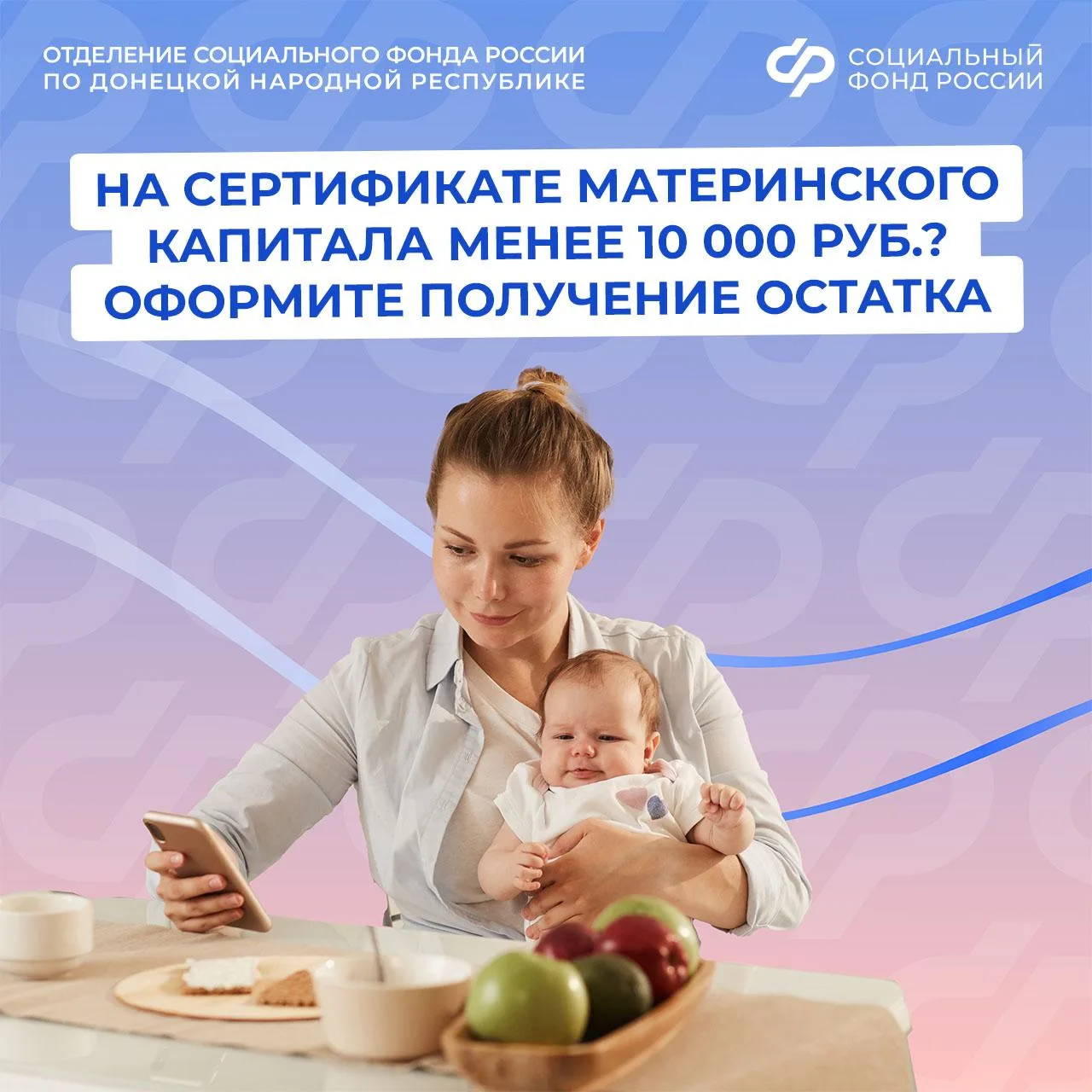 Семьи с детьми из Донецкой Народной Республики могут получить остаток средств материнского капитала в виде единовременной денежной выплаты, если сумма остатка на сертификате не превышает или равна 10 000 руб.