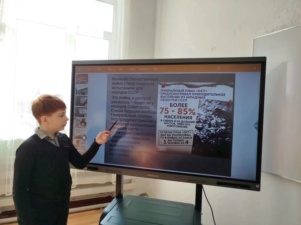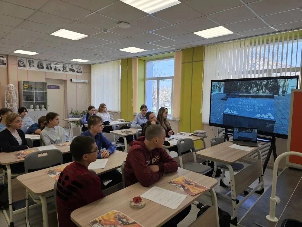 В старших классах Розовской школы прошли уроки мужества, где ребята подготовили трогательные выступления о судьбах мирных жителей и преступлениях оккупантов. Просмотр документального фильма с архивными кадрами вызвал особый эмоциональный отклик.