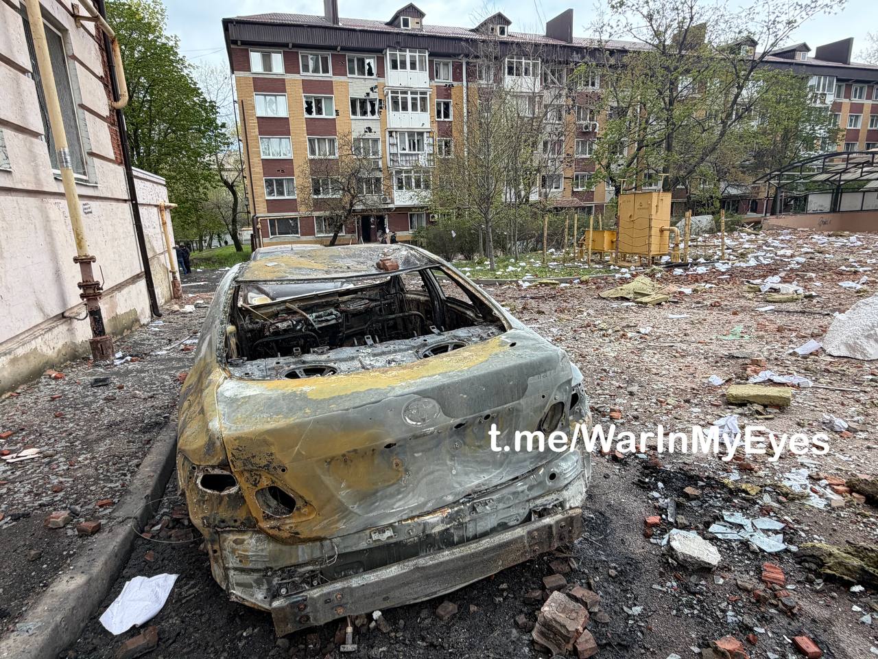 Последствия прилета ударных БПЛА самолетного типа в Ворошиловском районе Донецка, поврежден ряды многоквартирных домов и более 15 автомобилей.Источник фото: Война Глазами ЖурналистаПодписаться