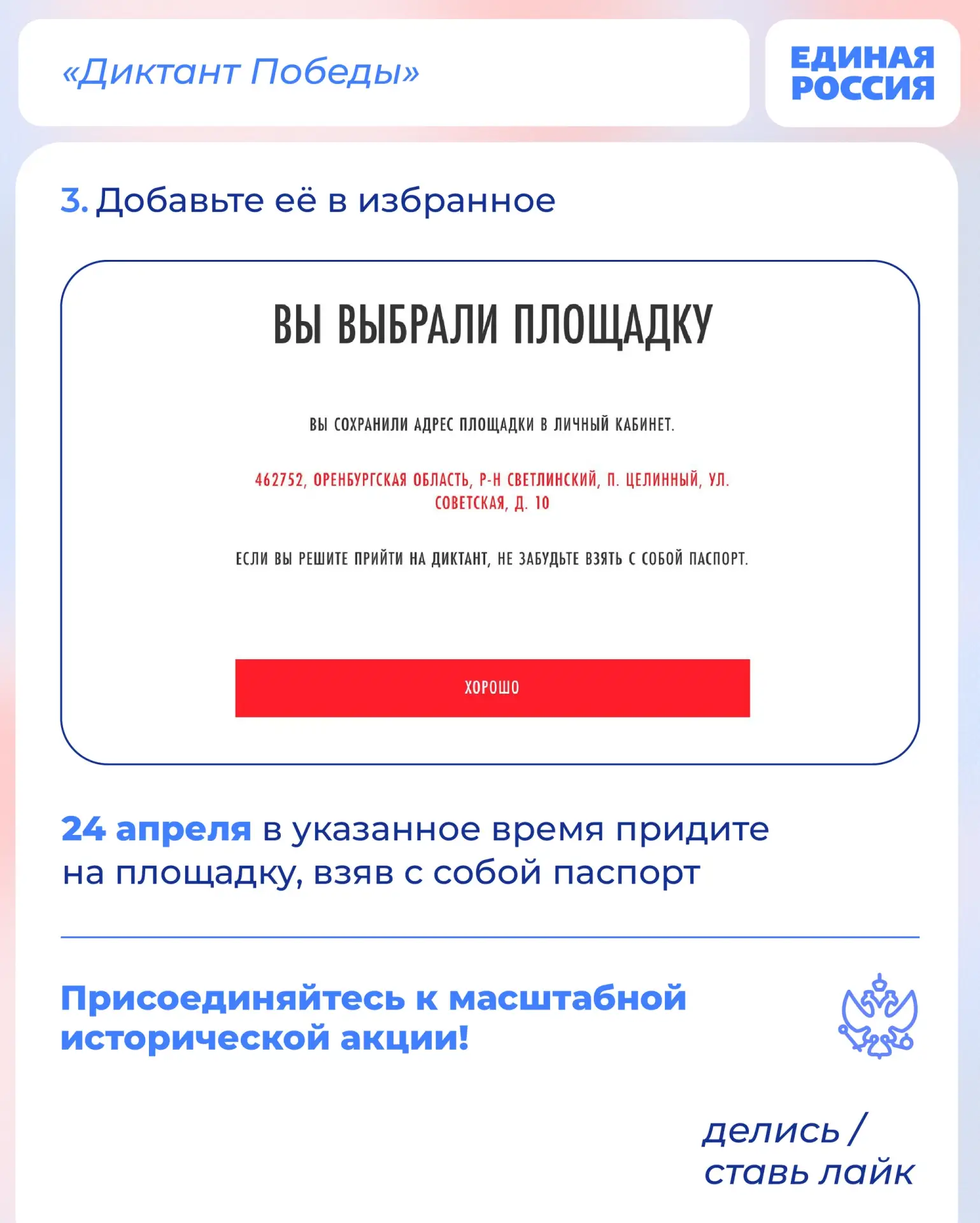 24 апреля Единая Россия проведет международную патриотическую акцию «Диктант Победы»