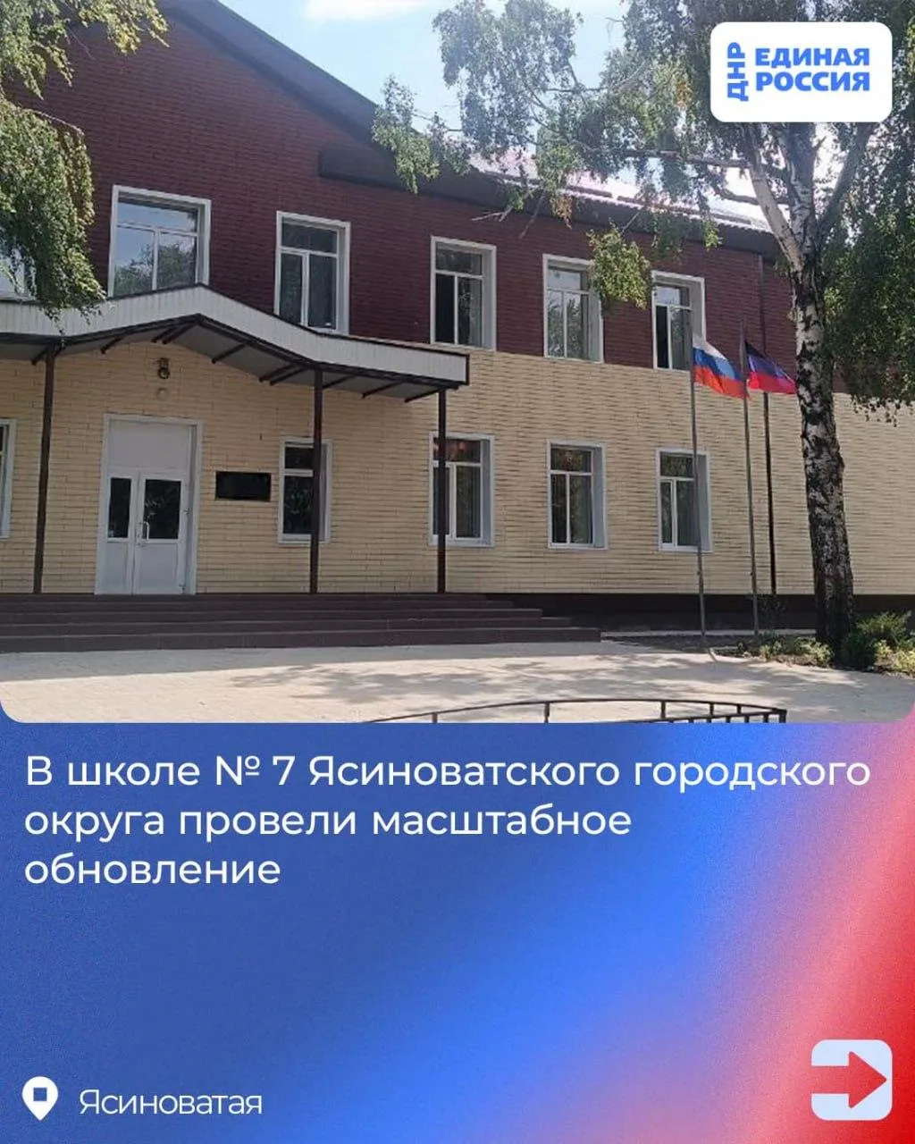 По народной программе Единой России в школе № 7 Ясиноватского муниципального округа провели масштабное обновление. Здание, которое неоднократно страдало от обстрелов, полностью преобразилось. Строители шефа-региона Челябинской области капитально отремонтировали учебные кабинеты, холлы, коридоры и столовую. В спортивном зале теперь современные покрытие и инвентарь — ребятам будет где развернуться. Обновили кровлю, фасад, заменили окна и двери, привели в порядок все инженерные сети.
