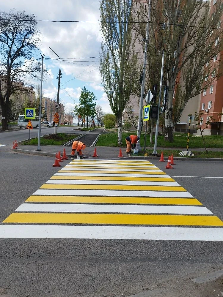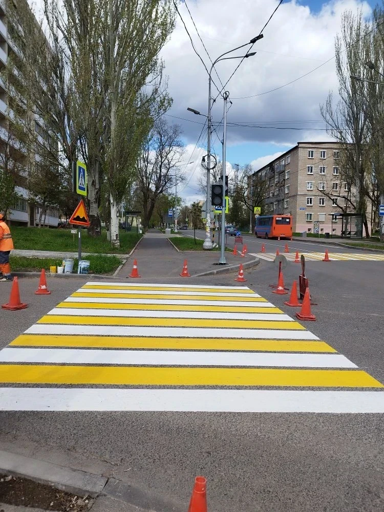 Дорожники продолжают обновлять пешеходную разметку у мемориалов Великой Отечественной войны