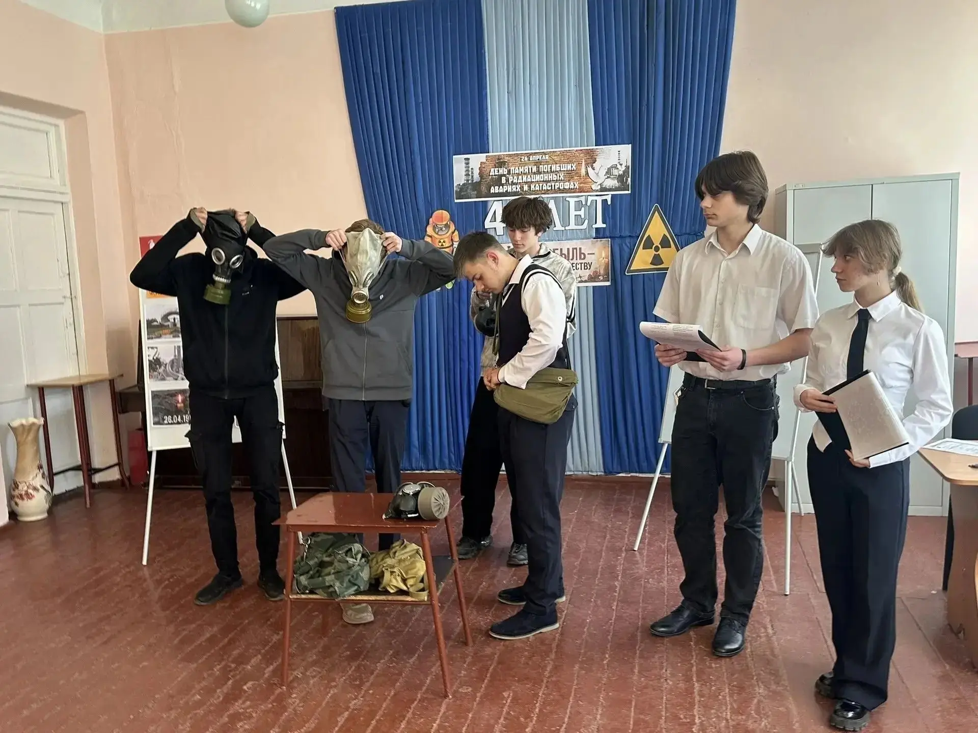 В ходе мероприятия ребята узнали, что 26 апреля 1986 года в 01 час 23 минуты 50 секунд произошла самая страшная техногенная катастрофа XX века – взрыв на 4-м энергоблоке Чернобыльской АЭС. Здание энергоблока частично обрушилось, начался пожар. Взрывы привели к полному разрушению реактора. В результате аварии произошел выброс радиоактивных веществ.