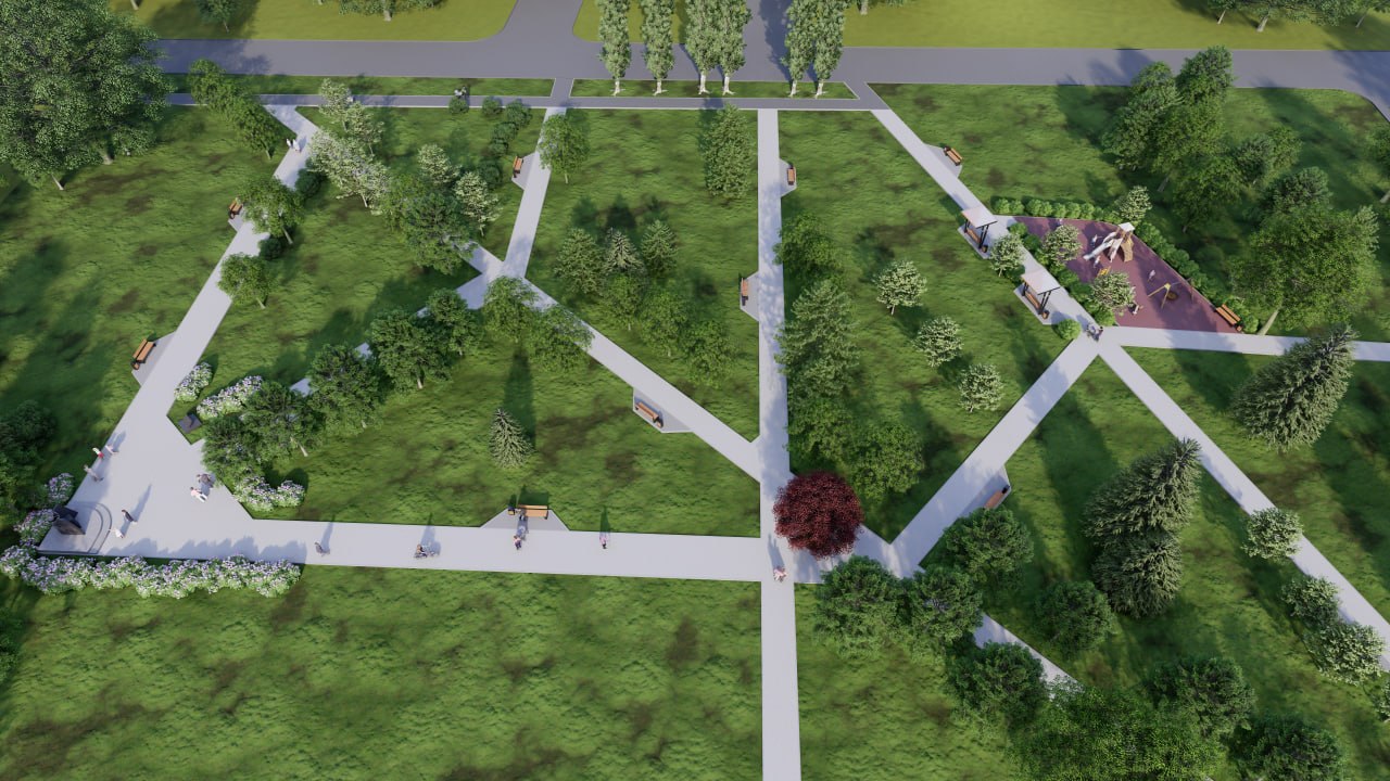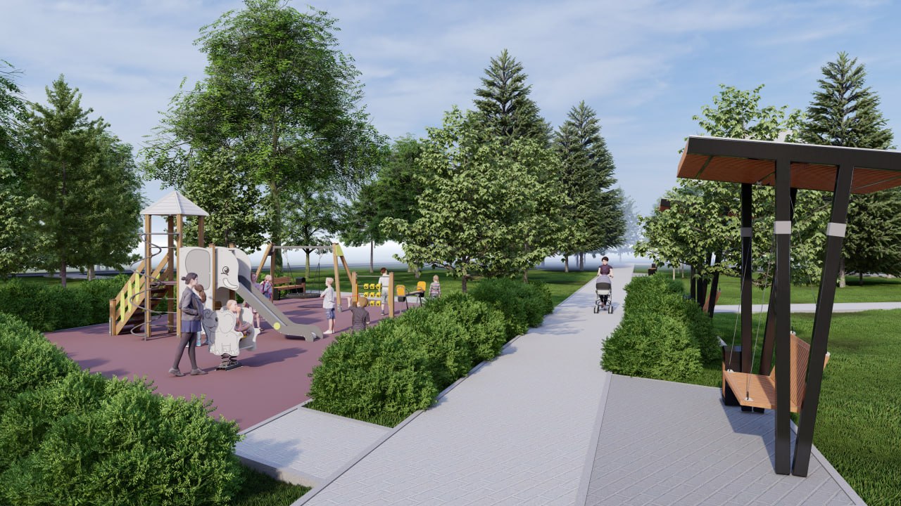 Скоро здесь появятся новые пешеходные дорожки, комфортные зоны отдыха с лавочками, система уличного освещения, а также современная детская площадка.