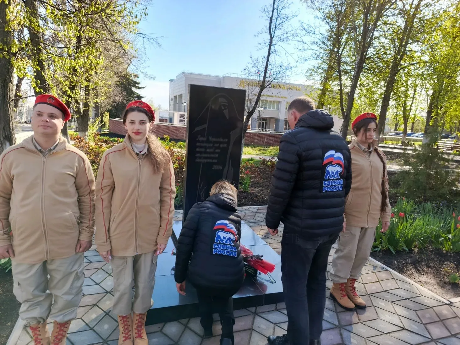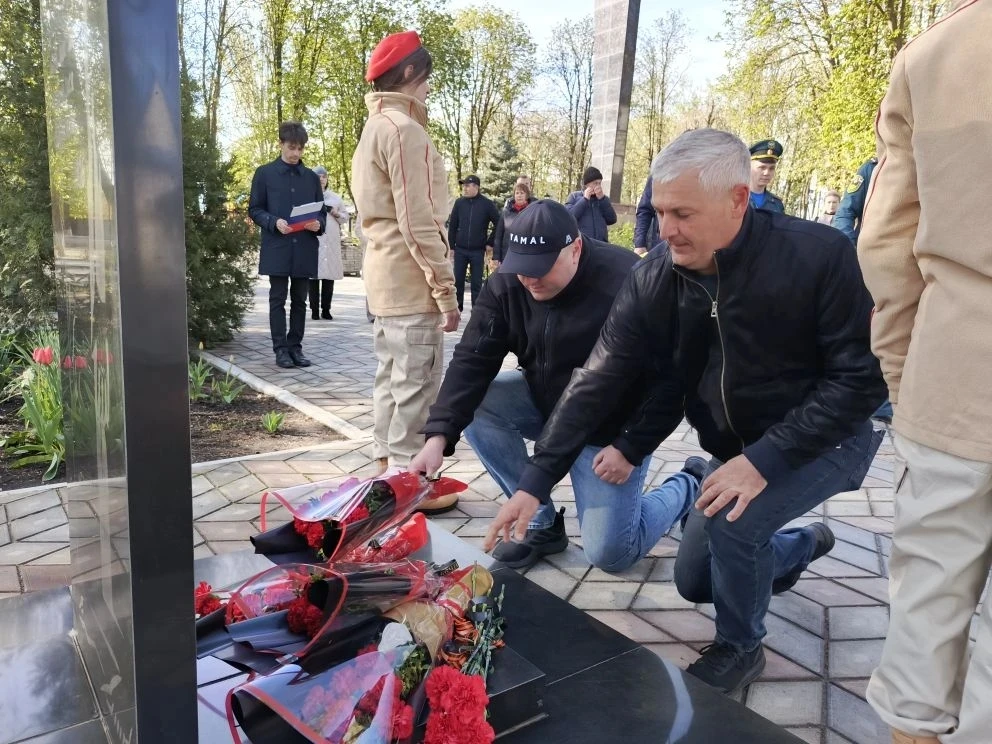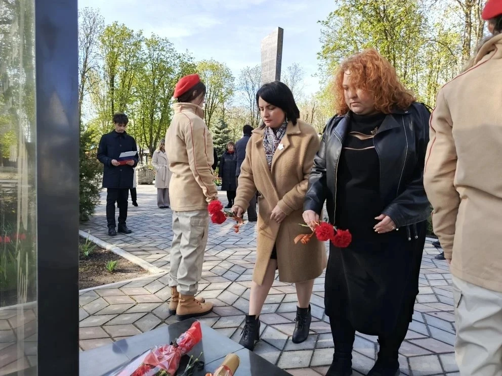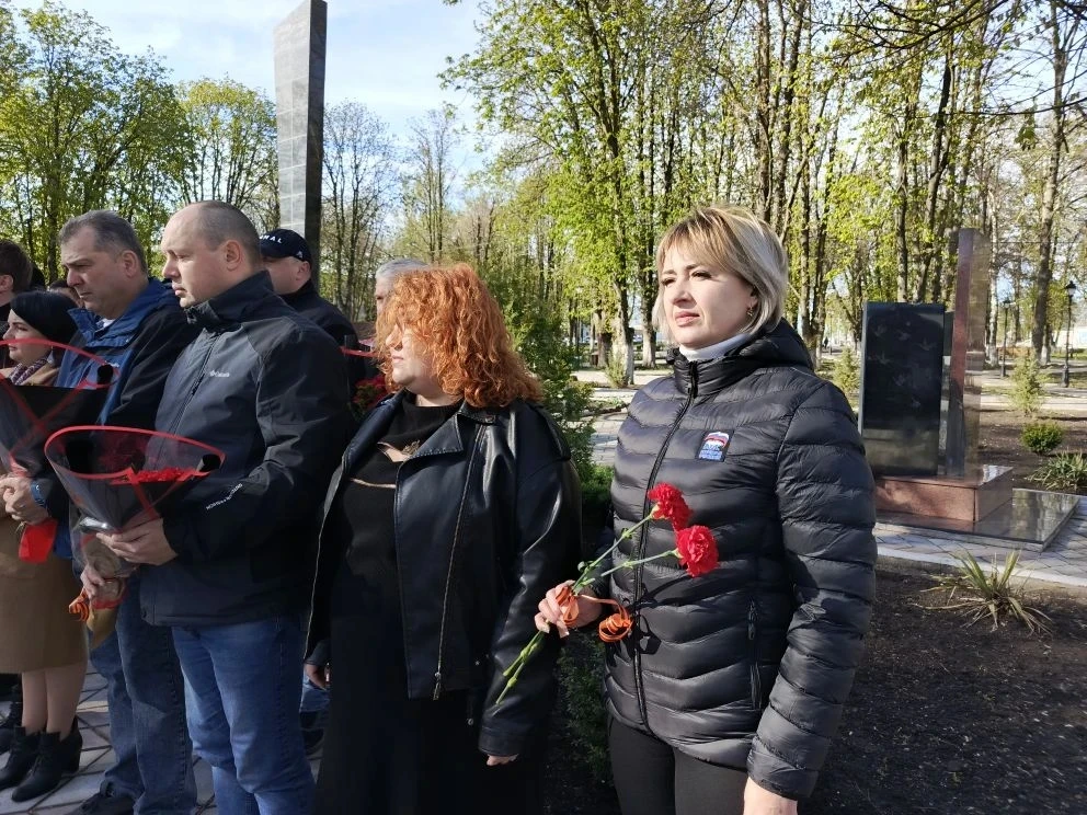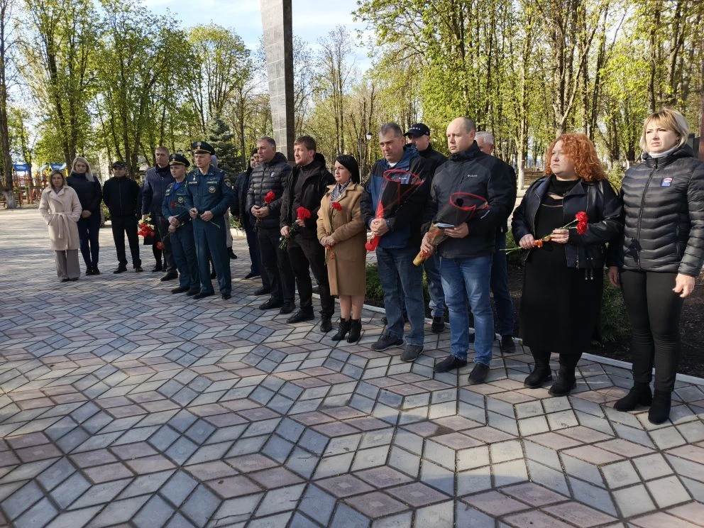 В предверии Дня участников ликвидации последствий радиационных аварий и катастроф, памяти жертв этих аварий и катастроф Врип главы администрации Волновахского МО Иван Борзых, председатель Волновахского муниципального совета, депутат от фракции «Единая Россия» Таймураз Арсоев, заместитель главы администрации Волновахского МО, координатор Женского движения партии «Единая Россия» Елена Снисаренко, заместитель главы администрации Олег Сидоренко, управляющий делами администрации Мария Васильева, представитель губернатора ЯНАО Юрий Хаустов совместно с депутатами и активистами партии «Единая Россия», сотрудниками МЧС и администрации округа, активистами молодежного патриотического движения «ЮНАРМИЯ» возложили цветы к памятнику Героям Чернобыля и почтили память жертв тех страшных событий минутой молчания в рамках партийного проекта Партии «Единая Россия» «Историческая память».