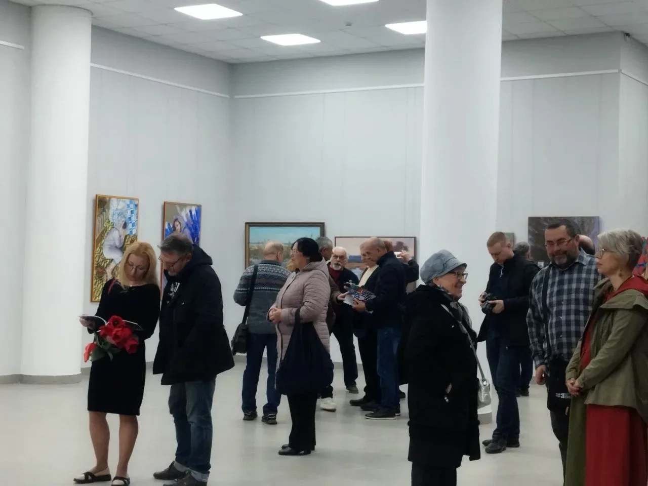 Первые посетители с интересом знакомились с 37 представленными картинами мастеров кисти из Москвы, Липецка, Ельца и Мариуполя, чье творческое сотрудничество стартовало в сентябре прошлого года и теперь вылилось в совместный проект.