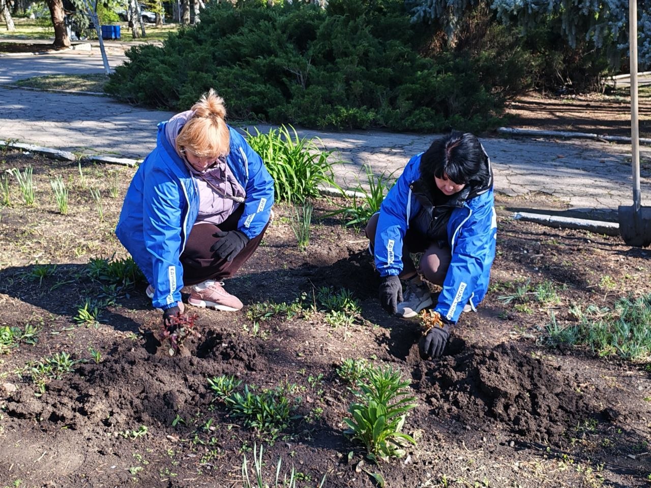 Дружной командой провели работы по благоустройству городских территорий. Особое внимание уделили памятным местам города, где были высажены прекрасные розы, символизирующие память и уважение.