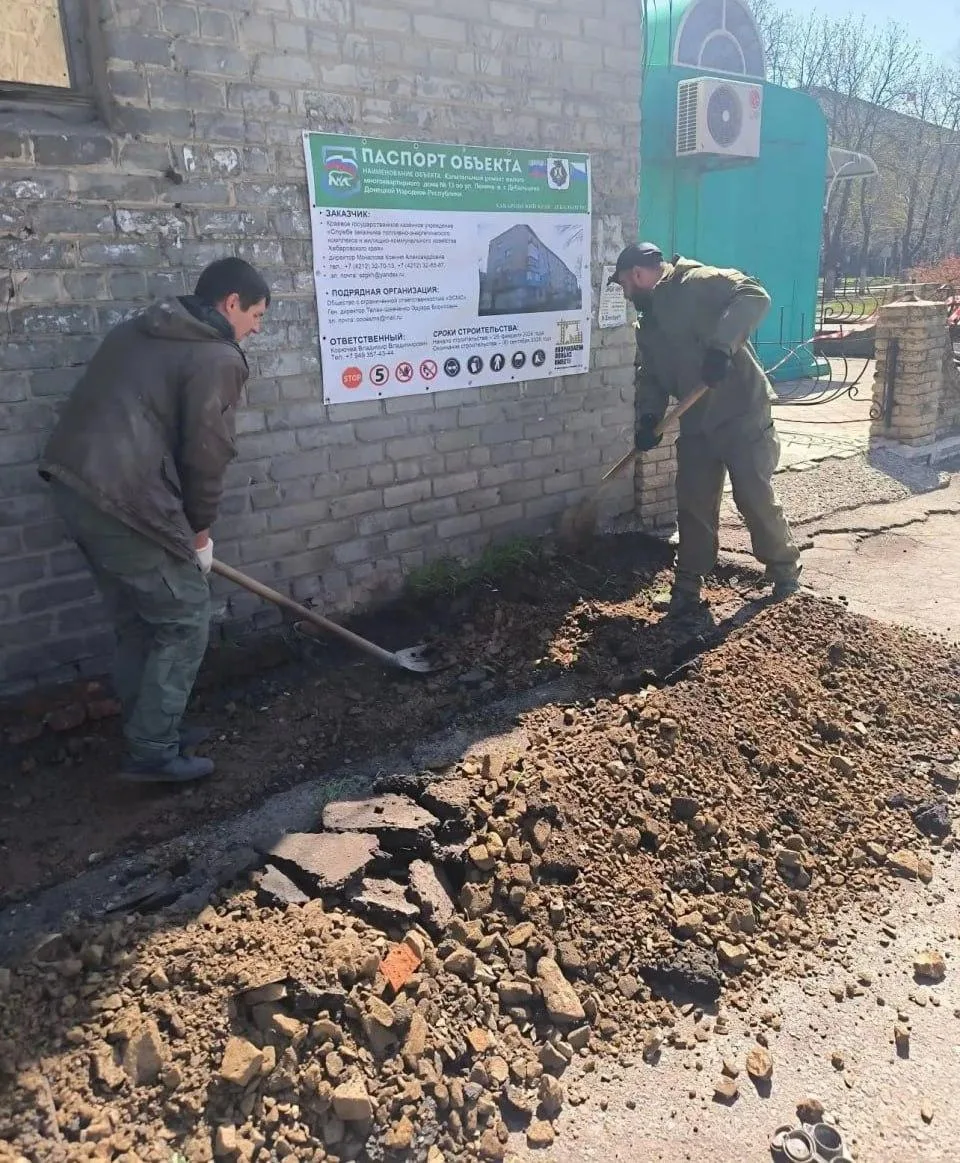 Хабаровский край отремонтировал отмостки вокруг дома на улице Ленина в Дебальцево