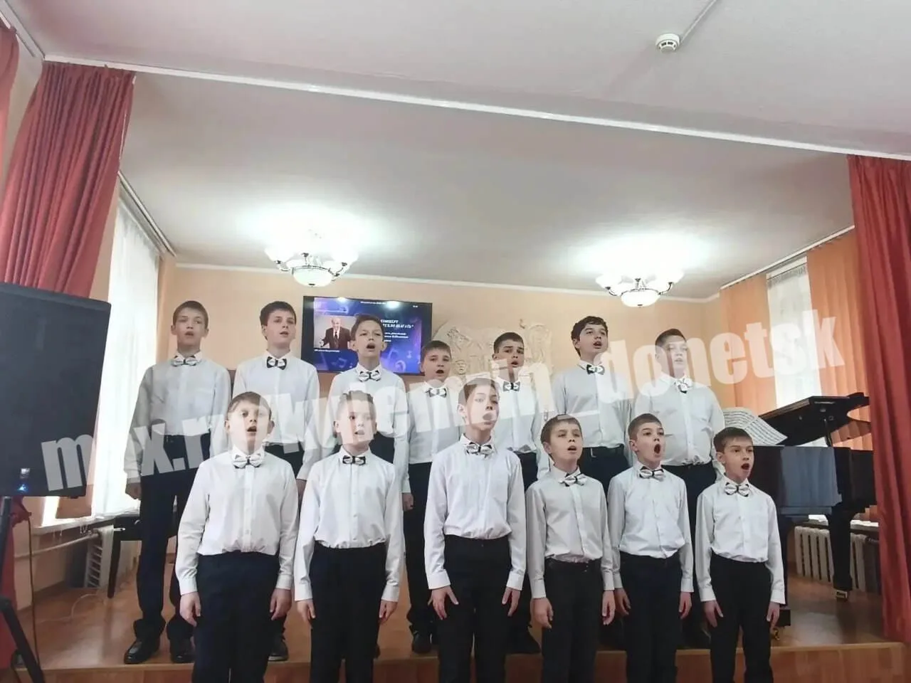 В исполнении учащихся школы прозвучали: «Вместе весело шагать по просторам», «Крейсер «Аврора», «Антошка», «Облака». «Один раз в год сады цветут», «Родительский дом» и другие песни, горячо любимые Дончанами.