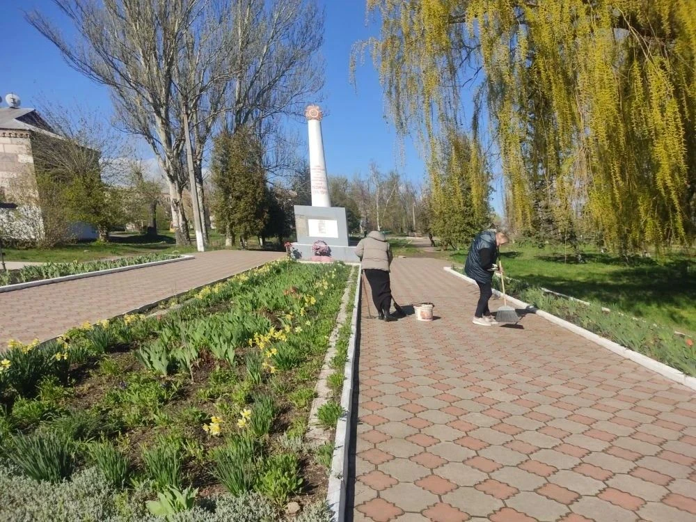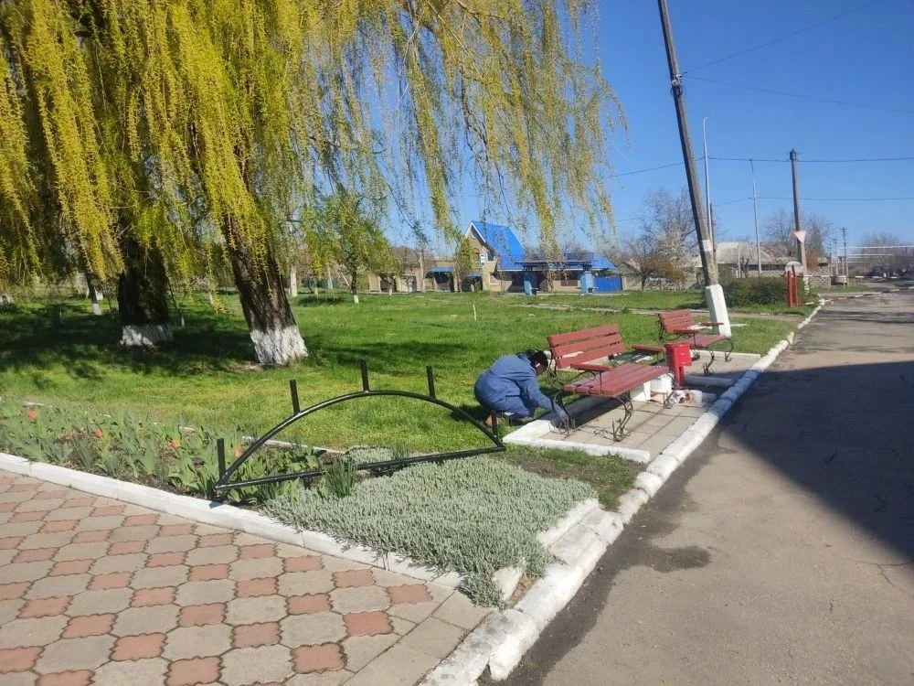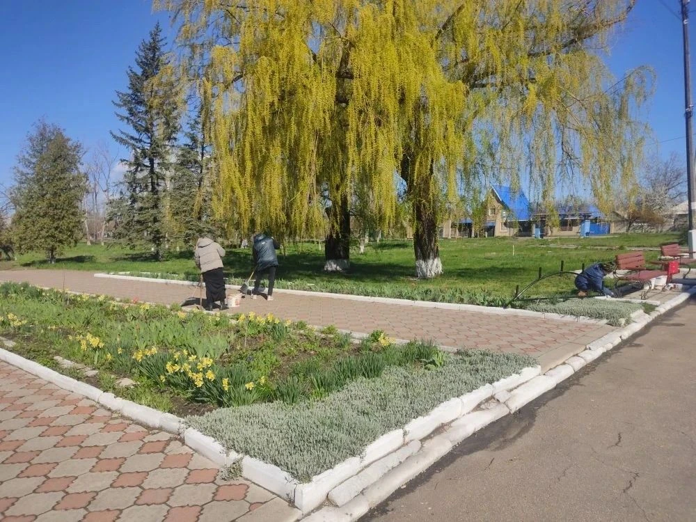 Дружно разобрав рабочий инвентарь, мётлы и грабли, провели слаженную работу: сгребали прошлогоднюю траву и листву, убирали бытовой мусор, подмели около здания Центра, привели в порядок дорожки на прилегающей территории, покрасили бордюры, лавочки и фонарные столбы.