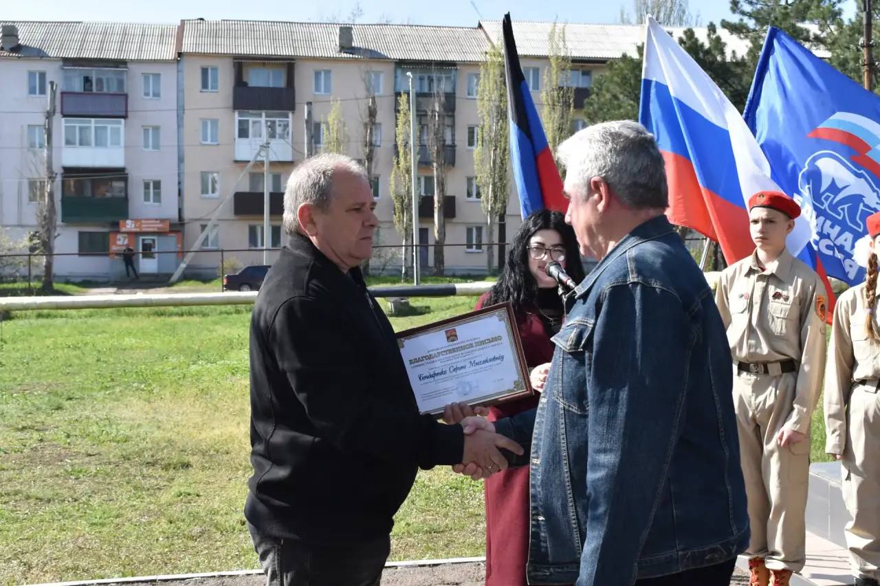 Слова признательности прозвучали от заместителя главы Шахтерского муниципального округа Сергея Назарова. Он вручил Благодарственные письма участникам ликвидации последствий аварии на Чернобыльской АЭС — людям, чей самоотверженный труд и мужество стали примером истинного патриотизма и служения Отечеству.