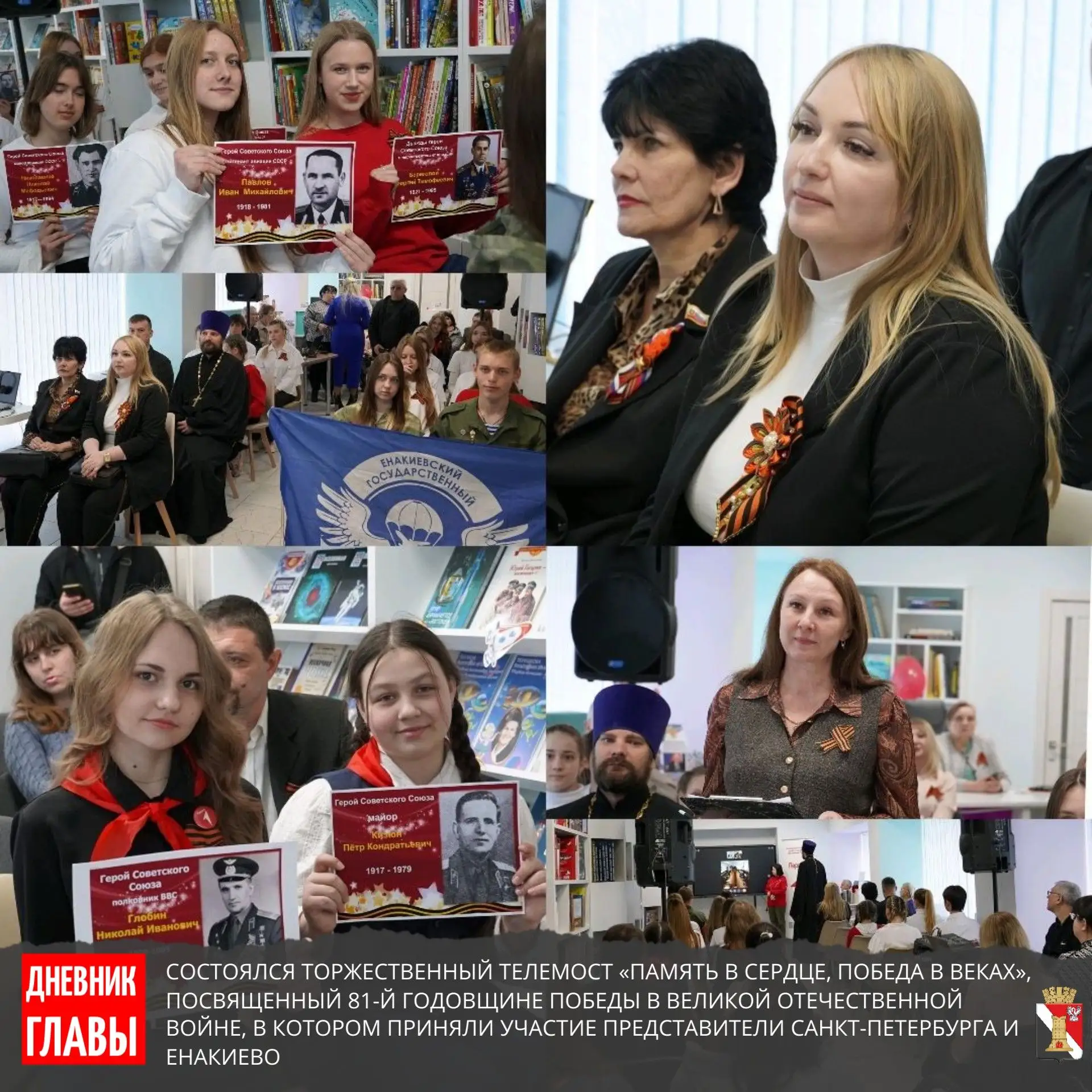 Состоялся торжественный телемост «Память в сердце, Победа в веках», посвященный 81-й годовщине Победы в Великой Отечественной войне, в котором приняли участие представители Санкт-Петербурга и Енакиево.