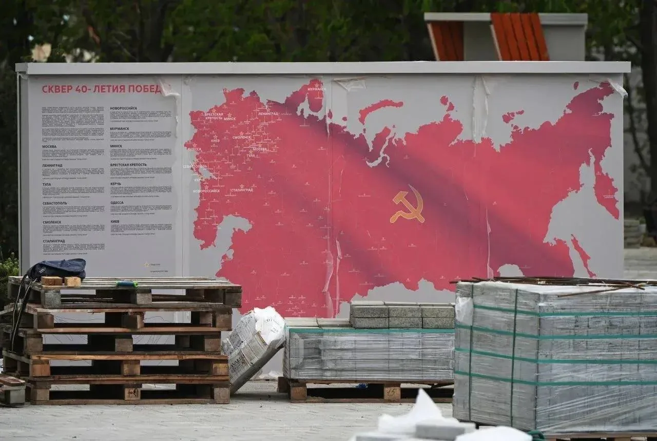 Карта СССР с отмеченными на ней городами-героями и стела уже установлены в парке.Там же обустраивают новую зону для прогулок и отдыха.