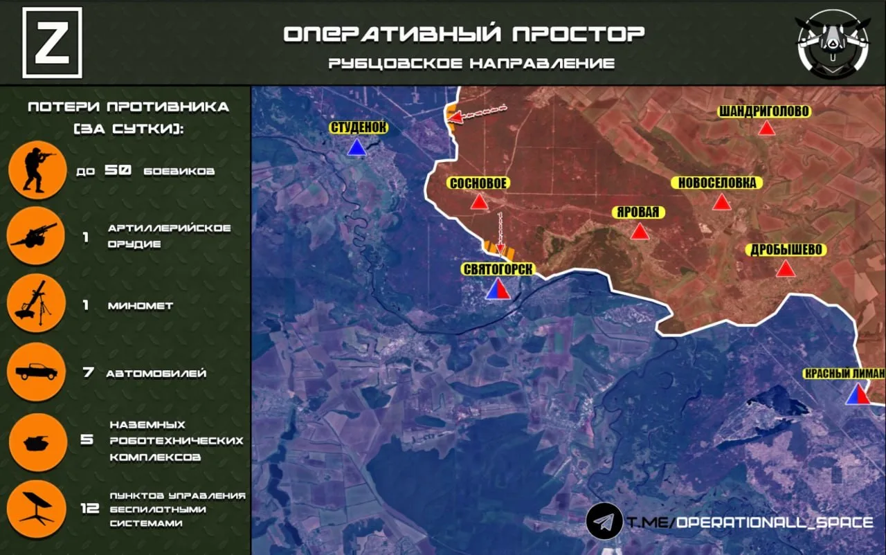 На Рубцовском направлении ВС РФ продвигаются в направлении н.п. Студенок и Святогорск, сообщает "Оперативный простор":