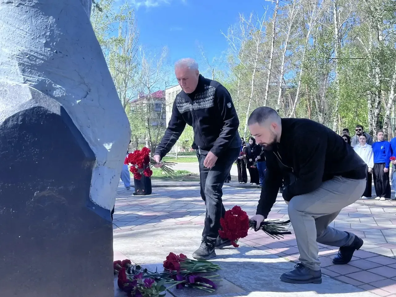 Совместно с министром молодежной политики Денисом Шимановским, сотрудниками учреждений культуры и образования, молодежными некоммерческими организациями, ветеранами-ликвидаторами и неравнодушными жителями города почтили память погибших минутой молчания и возложили цветы к подножию мемориала, символизируя нерушимую связь поколений и благодарность чернобыльцам.