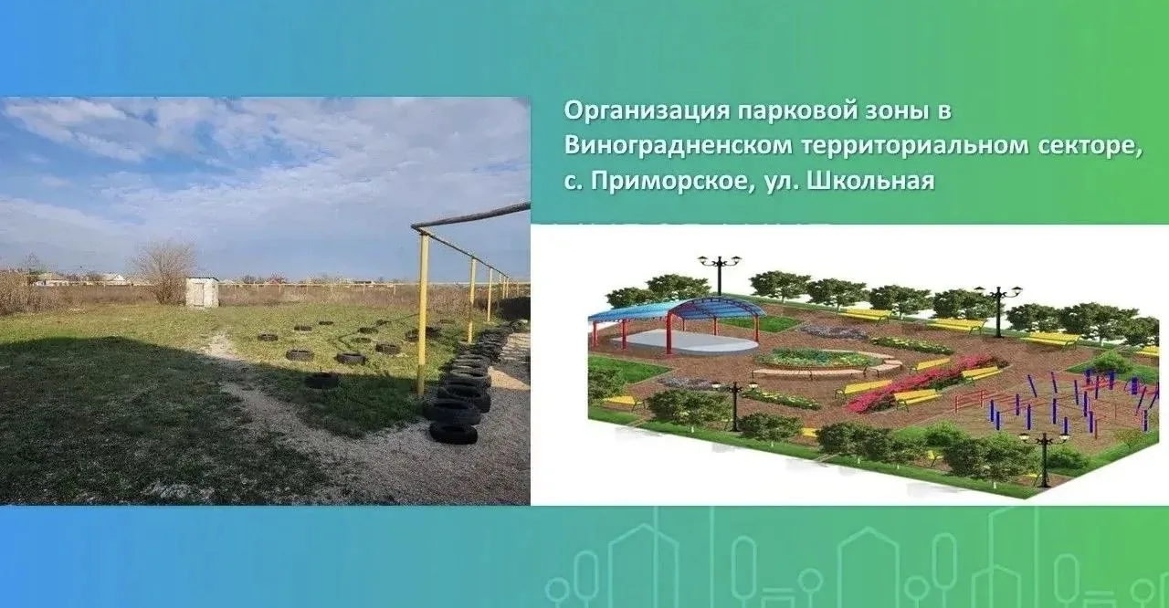 Организация парковой зоны в Виноградненском территориальном секторе, с. Приморское, ул. Школьная.