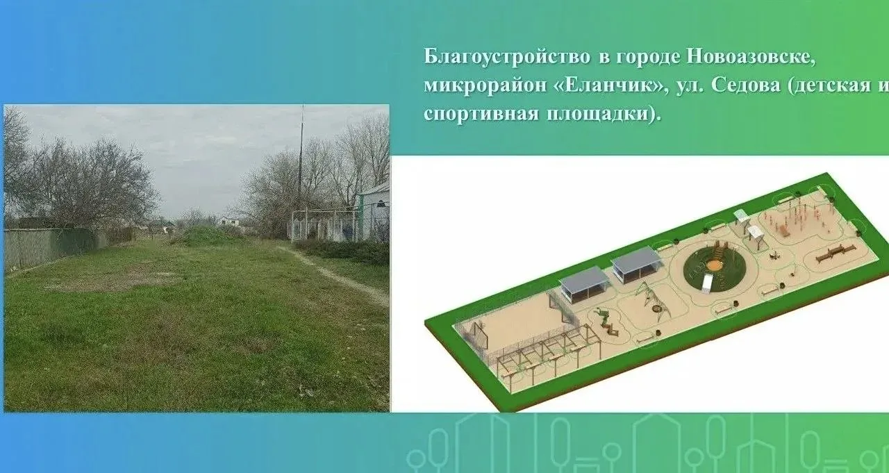 Благоустройство в городе Новоазовске, микрорайон «Еланчик», ул. Седова (детская и спортивная площадки).