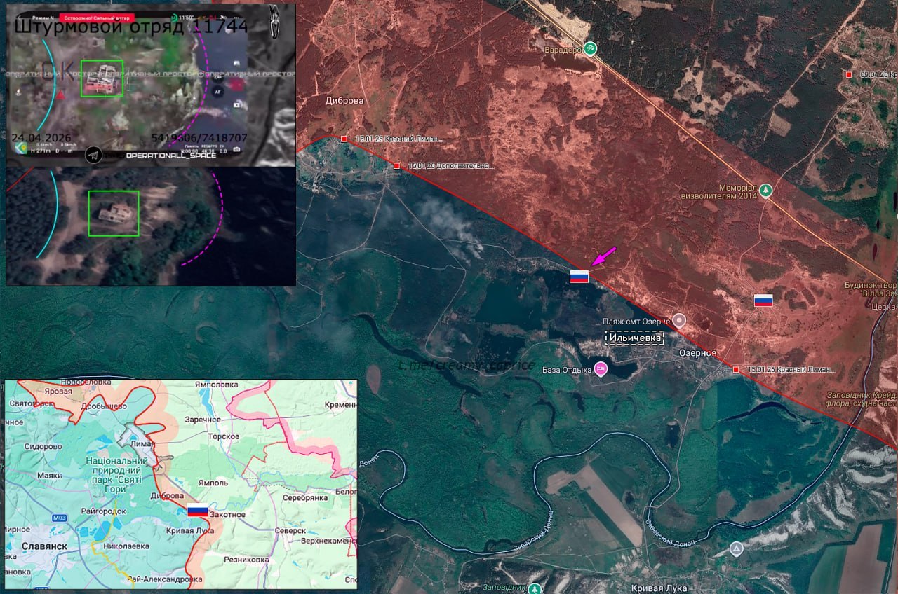 Военнослужащие ВС РФ поднимают флаг Российской Федерации в северной части Ильичовки и фиксируют контроль этой части населённого пункта Вооруженными Силами РФ.