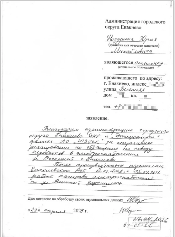 Благодарность от жителей