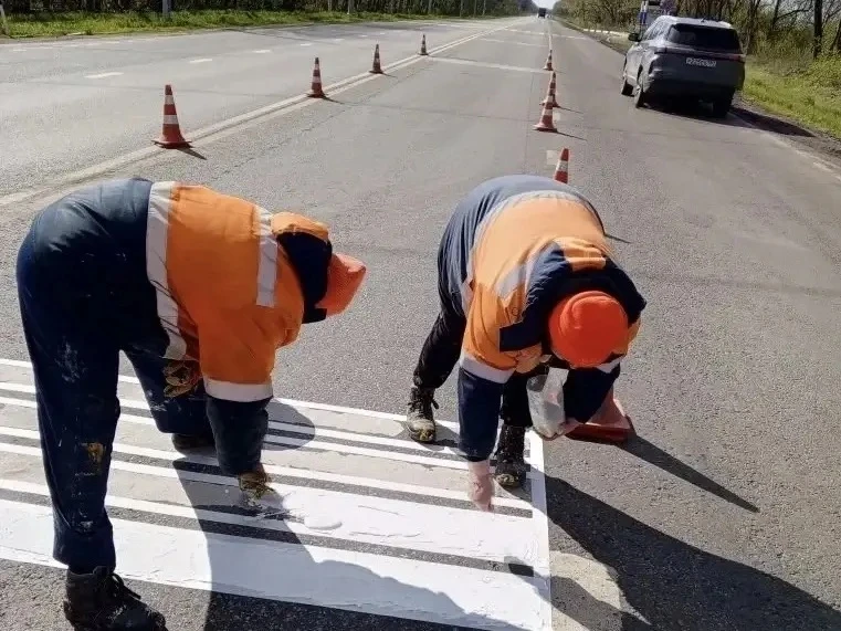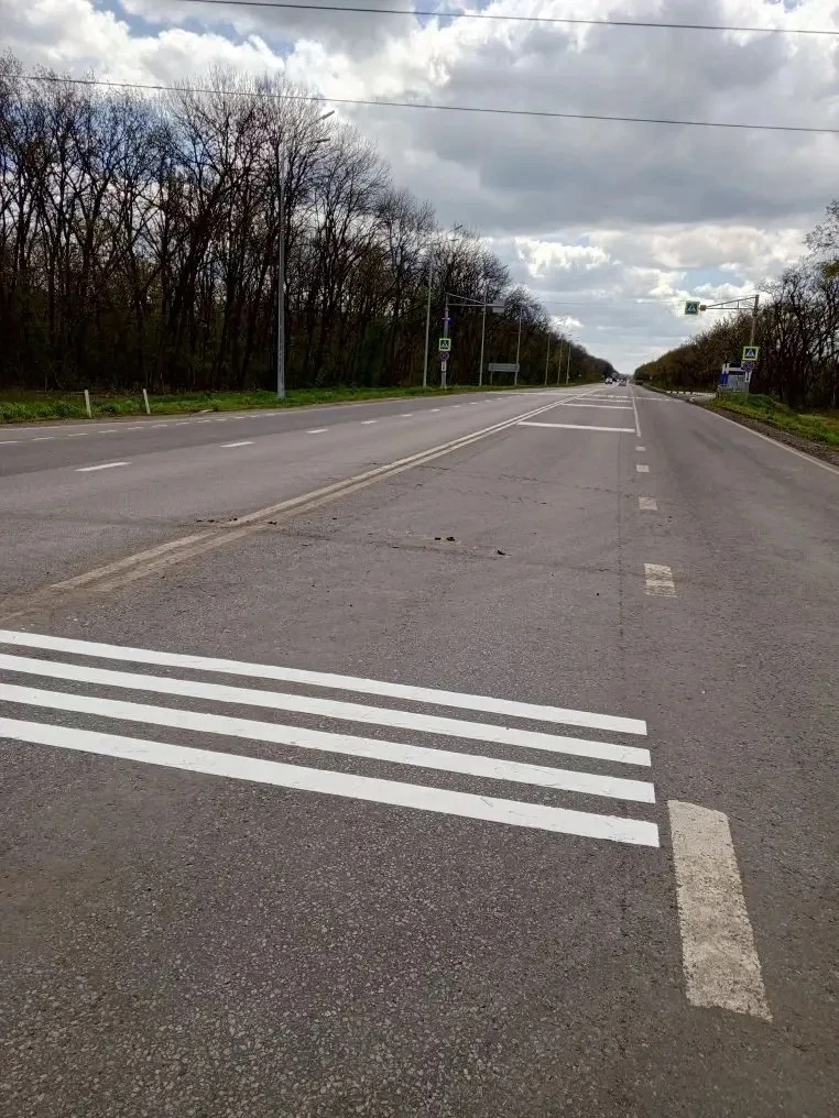 на автомобильной дороге Донецк - Харцызск - Амвросиевка - до границы Ростовской области нанесли дорожную разметку 1.14.1