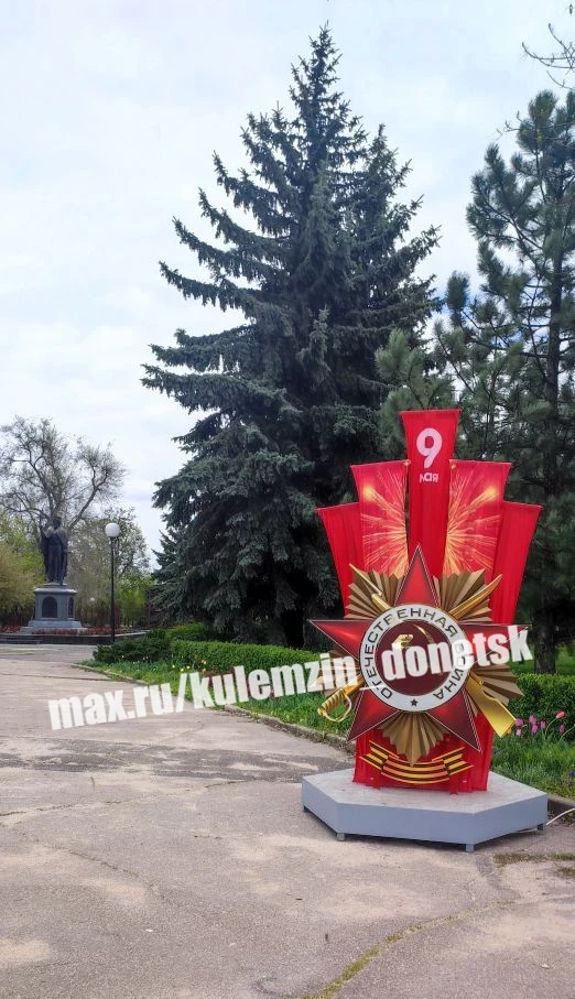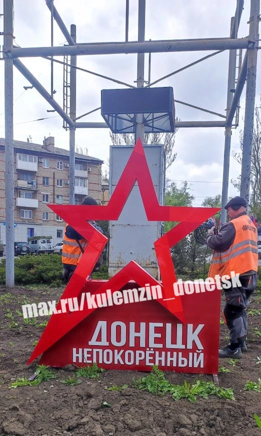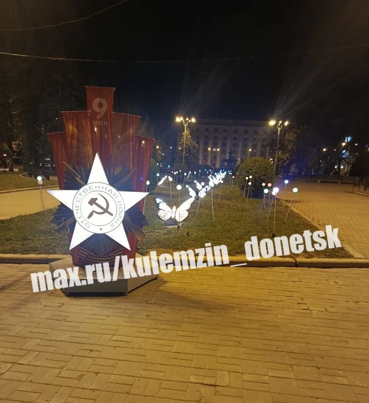 Алексей Кулемзин: Специалисты предприятия «Донецкгорсвет» устанавливают праздничные инсталляции во всех районах Донецка к 81 годовщине Победы в Великой Отечественной войне