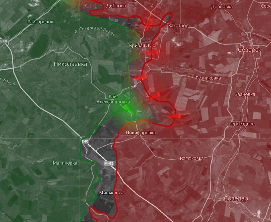 «На Славянском направлении ВС РФ захватили Озерное – ранее с этого участка фронта ВСУ регулярно предпринимали контратаки в сторону Закотного. В окрестных лесах все еще сохраняется обширная «серая зона», через которую украинские войска пытаются забросить в тыл российских подразделений малые группы пехоты.