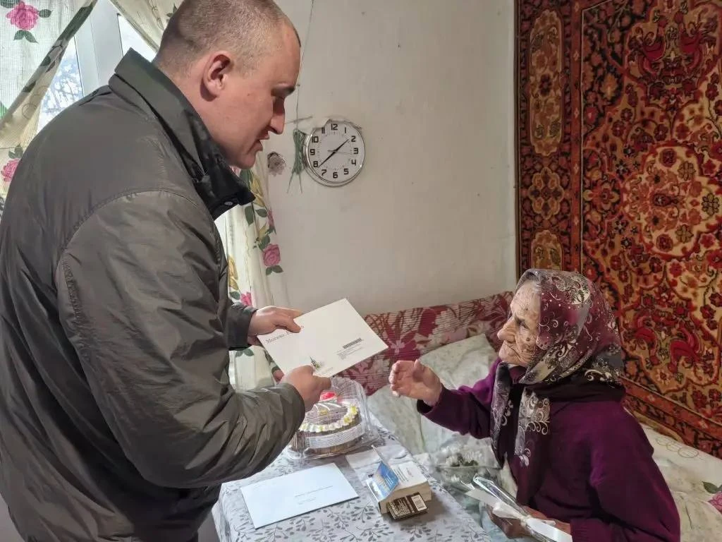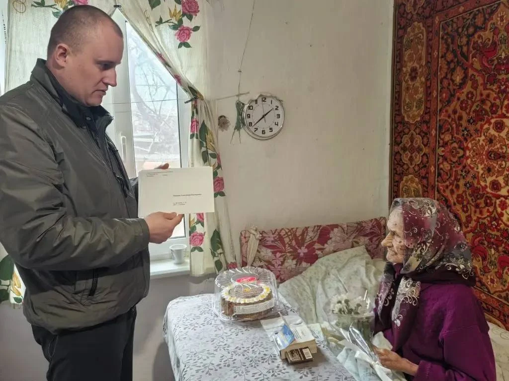 В рамках реализации проекта Партии «Единая Россия» «Старшее поколение» Александру Прохоровну с юбилеем поздравил руководитель Управы Никитовского внутригородского района Владислав Черкашин, вручив уважаемой юбилярше цветы, праздничный торт и поздравительный адрес от Президента Российской Федерации Владимира Владимировича Путина и от шефа-региона Горловки – Кузбасса. Такой знак внимания от главы государства подчеркивает особое отношение к людям, чья жизнь является примером стойкости и трудолюбия.