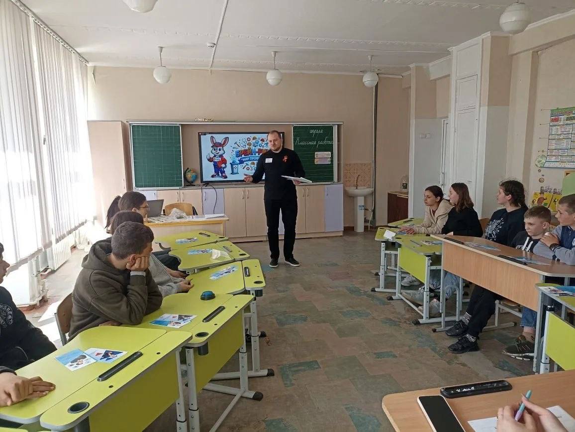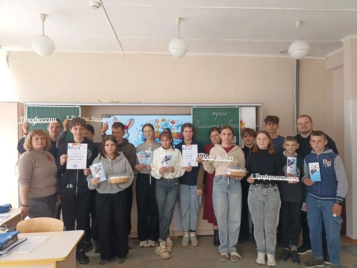 Выбор жизненного пути — это не просто точка на карте, это целое путешествие! 27 апреля 2026 года специалисты центра занятости Волновахского м.о. (в рамках реализации Проекта по маршрутизации и профориентации) для 14 учеников Владимировской и Благодатненской школ провели особенный профориентационный урок «От мечты к профессии: реальные шаги».