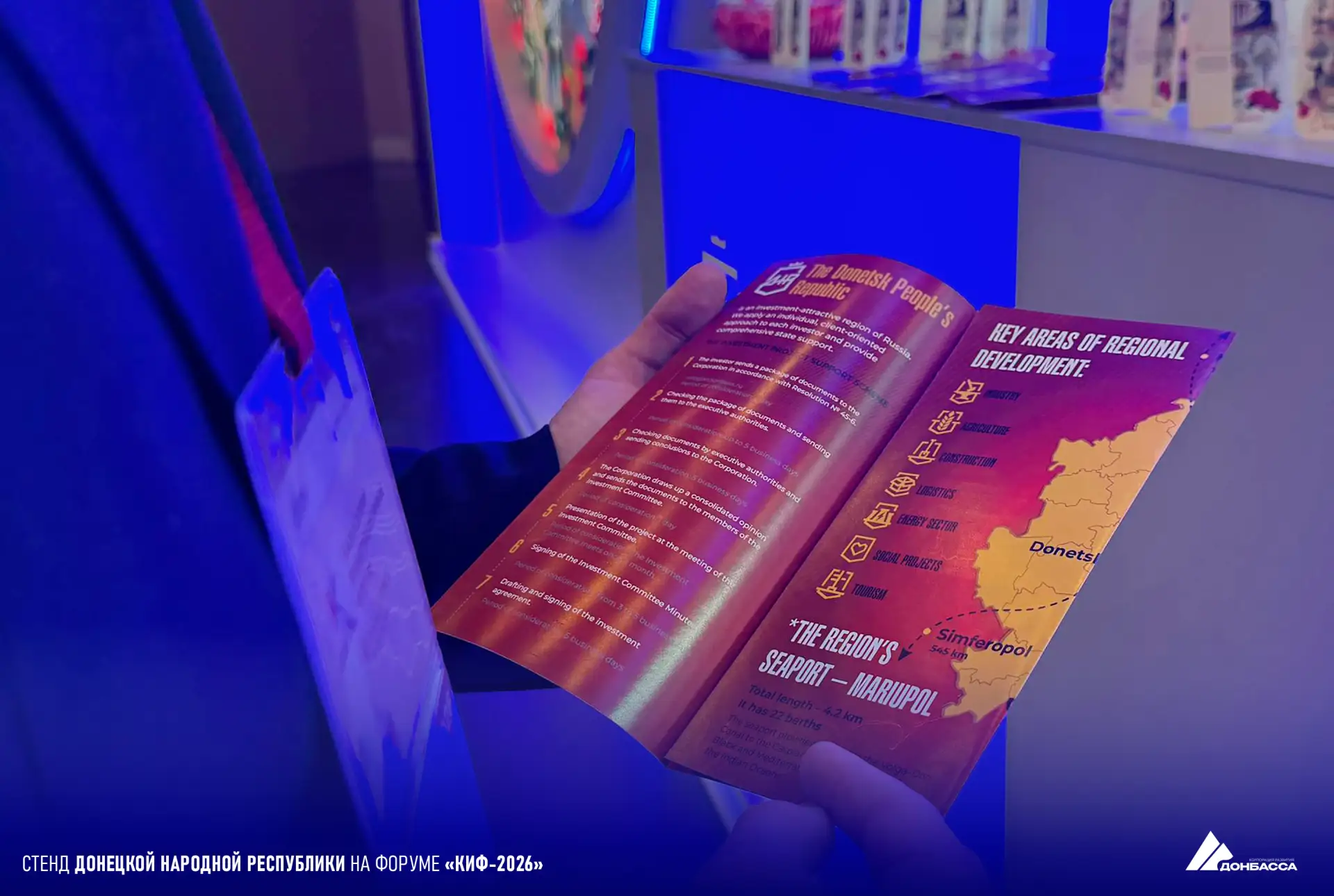Стенд Донецкой Народной Республики уже начал свою работу и привлекает внимание участников и гостей масштабного мероприятия. ДНР представила ключевые инвестиционные проекты региона — от развития тяжёлой промышленности до туристической отрасли и современного жилищного строительства.