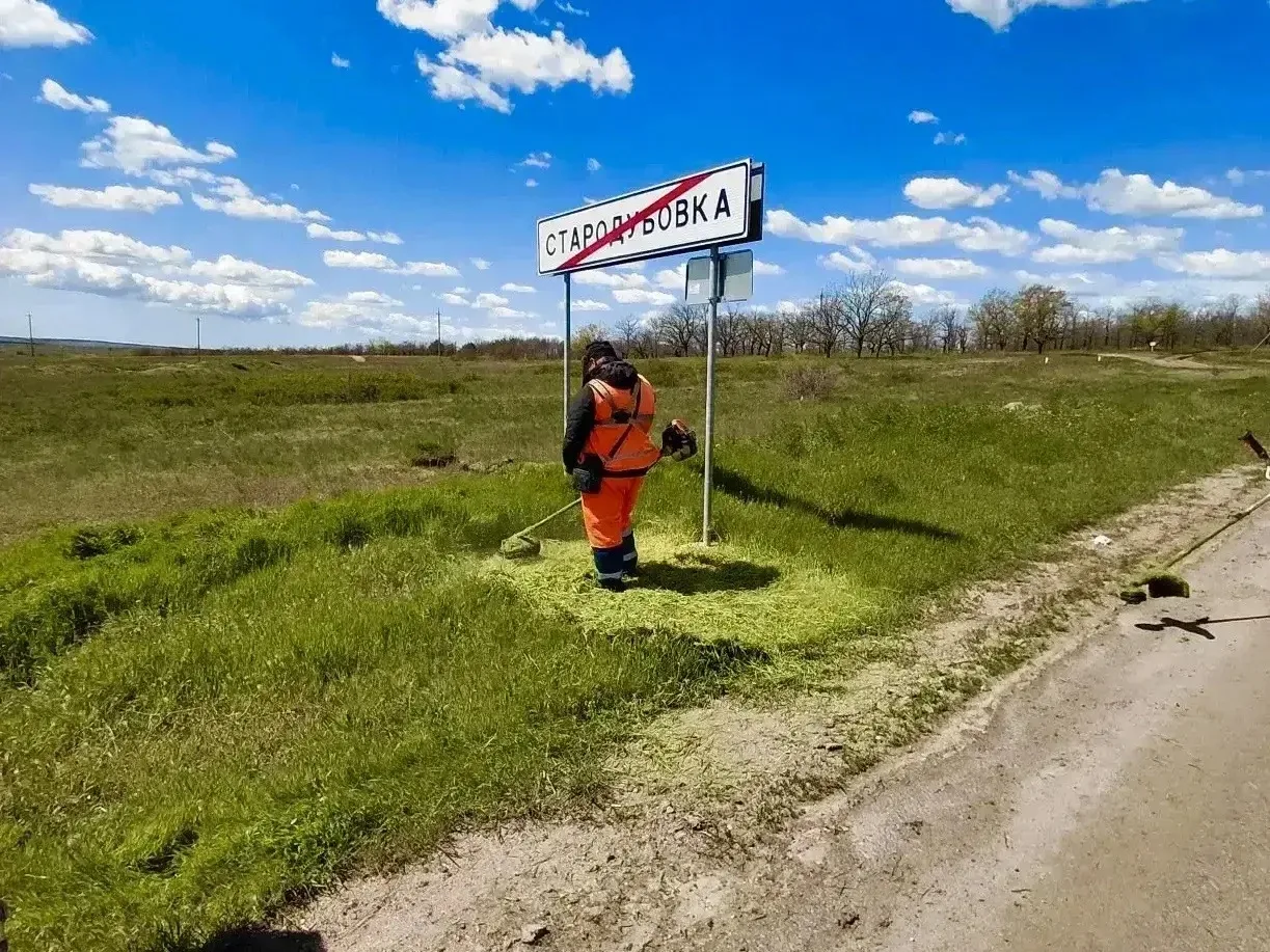 На этой неделе работали над благоустройством территории, где расположен монумент героям Великой Отечественной войны, вдоль автомобильной дороги /Белгород - Старобельск - Луганск - Донецк - Мариуполь/ - Кременёвка - Ялта.